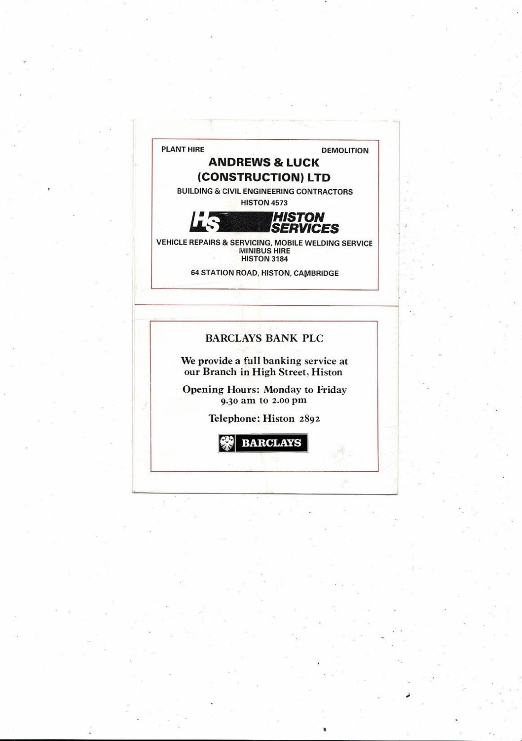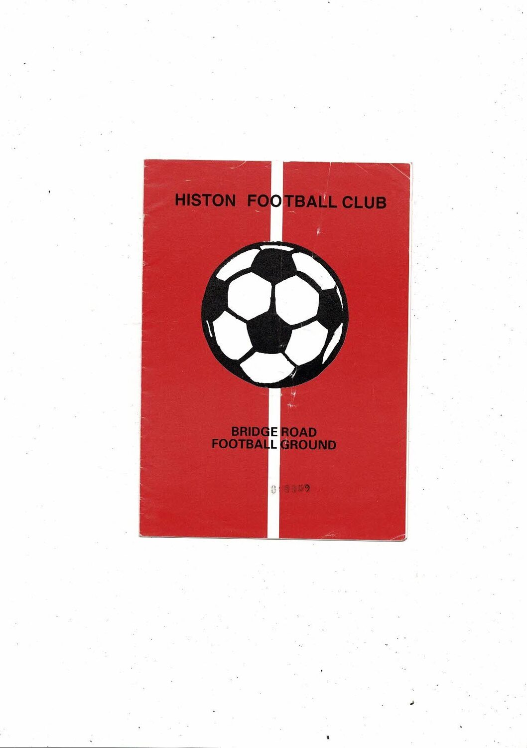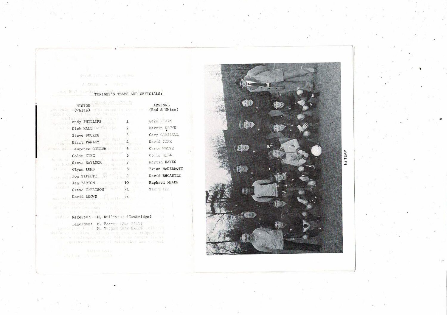 Histon v Arsenal Floodlit Friendly Football Programme 1984/85 4th December