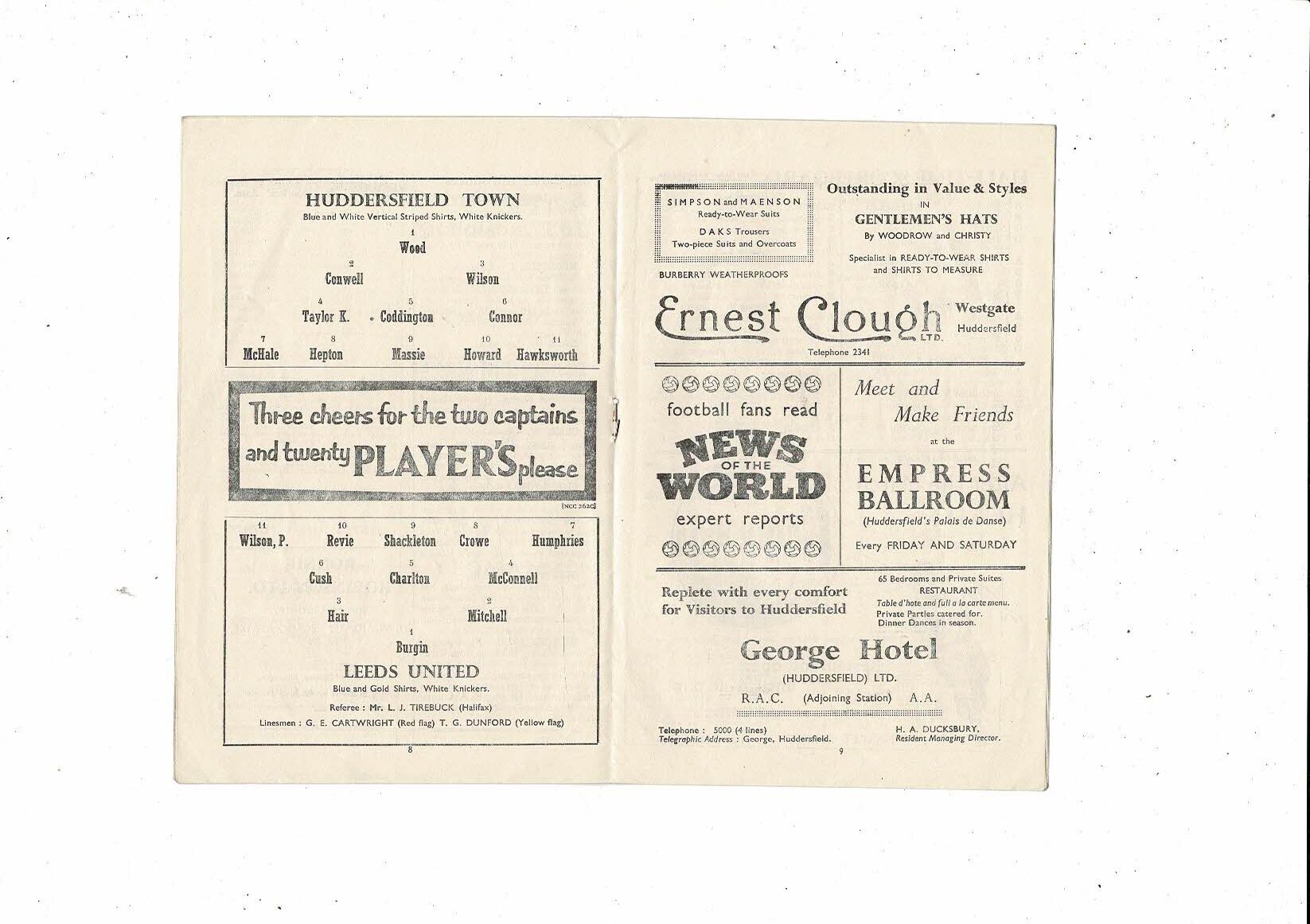 Huddersfield Town v Leeds United Friendly Football Programme 1958/59