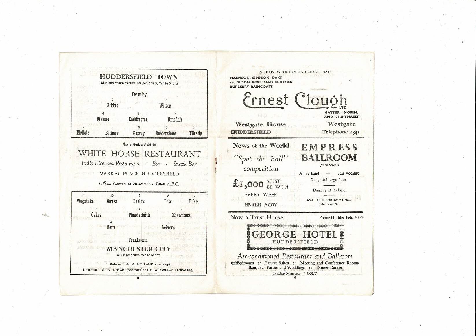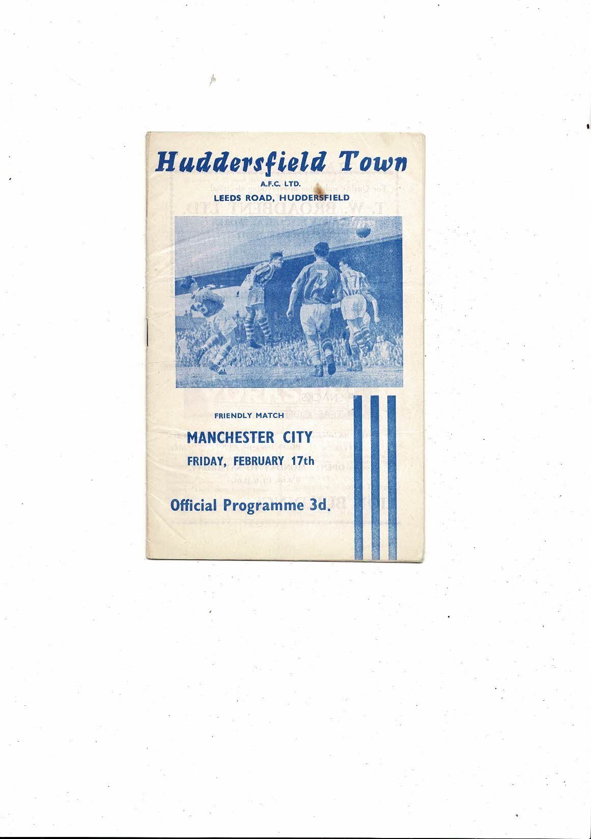 Huddersfield Town v Manchester City Friendly Football Programme 1960/61