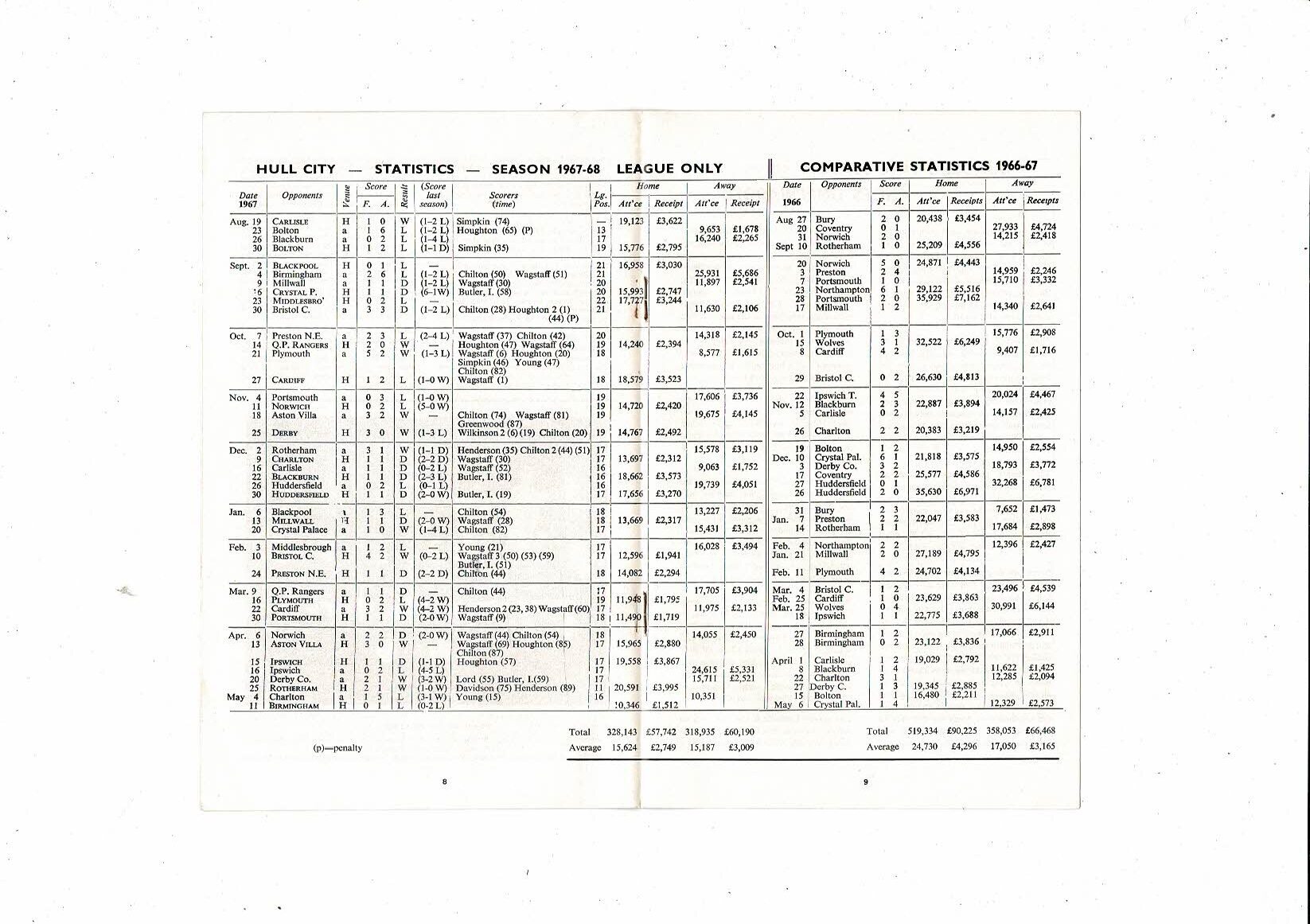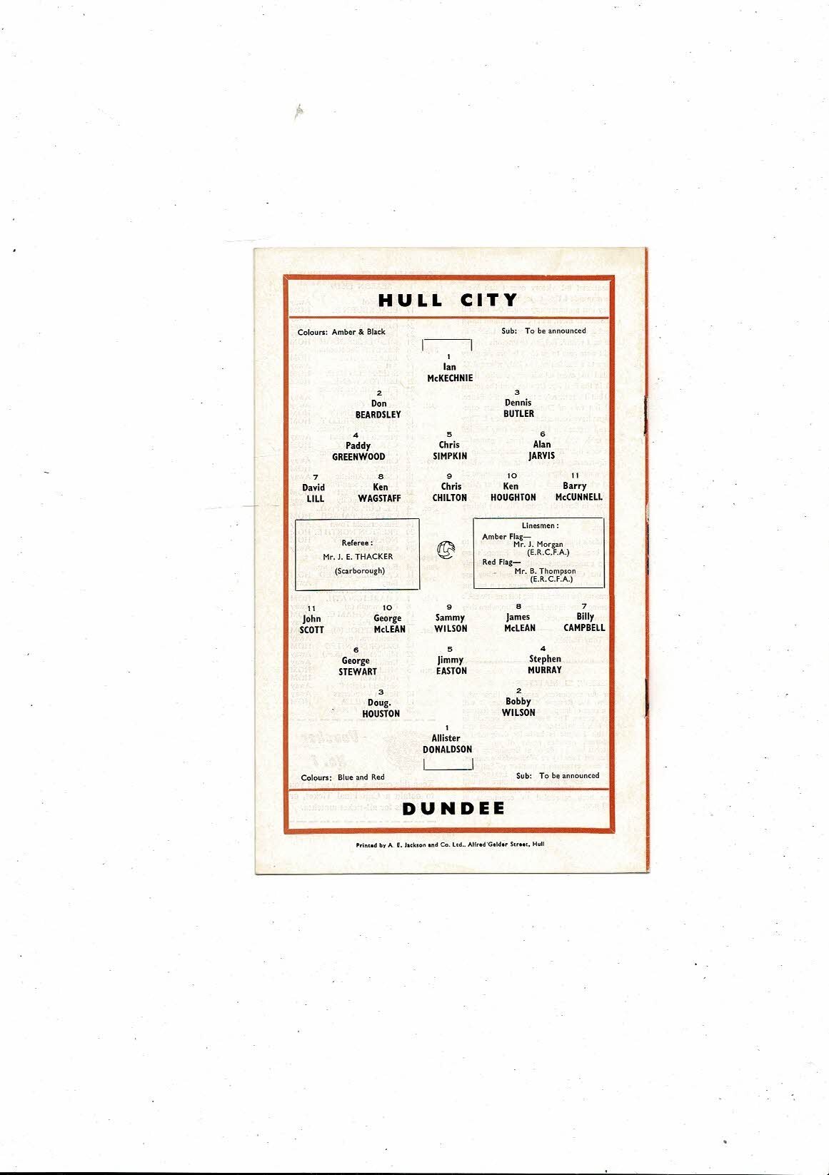 Hull City v Dundee Friendly Football Programme 1967/68