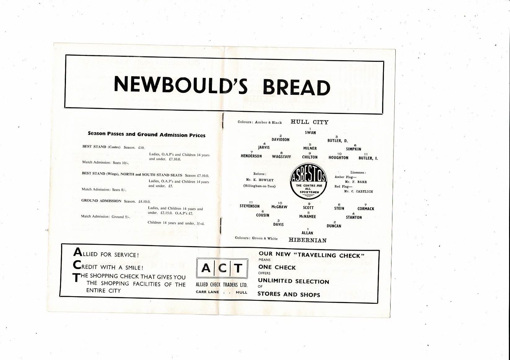 Hull City v Hibernian Friendly Football Programme 1966/67