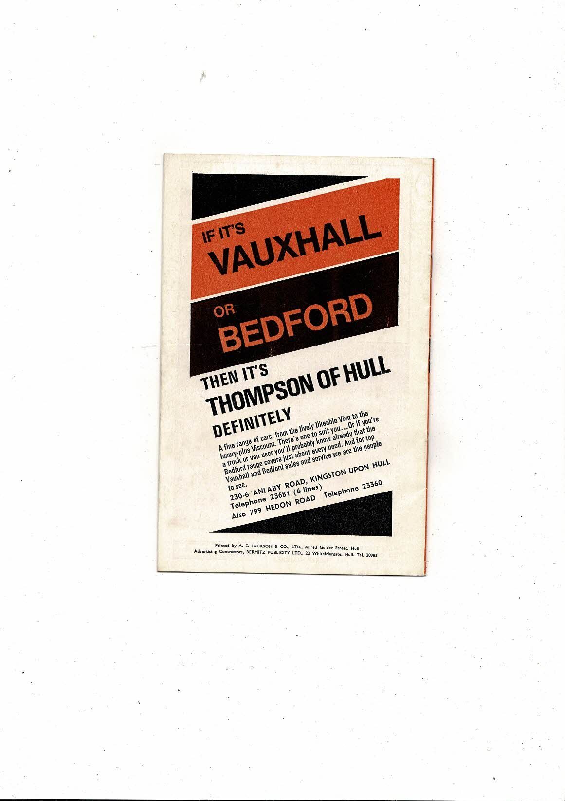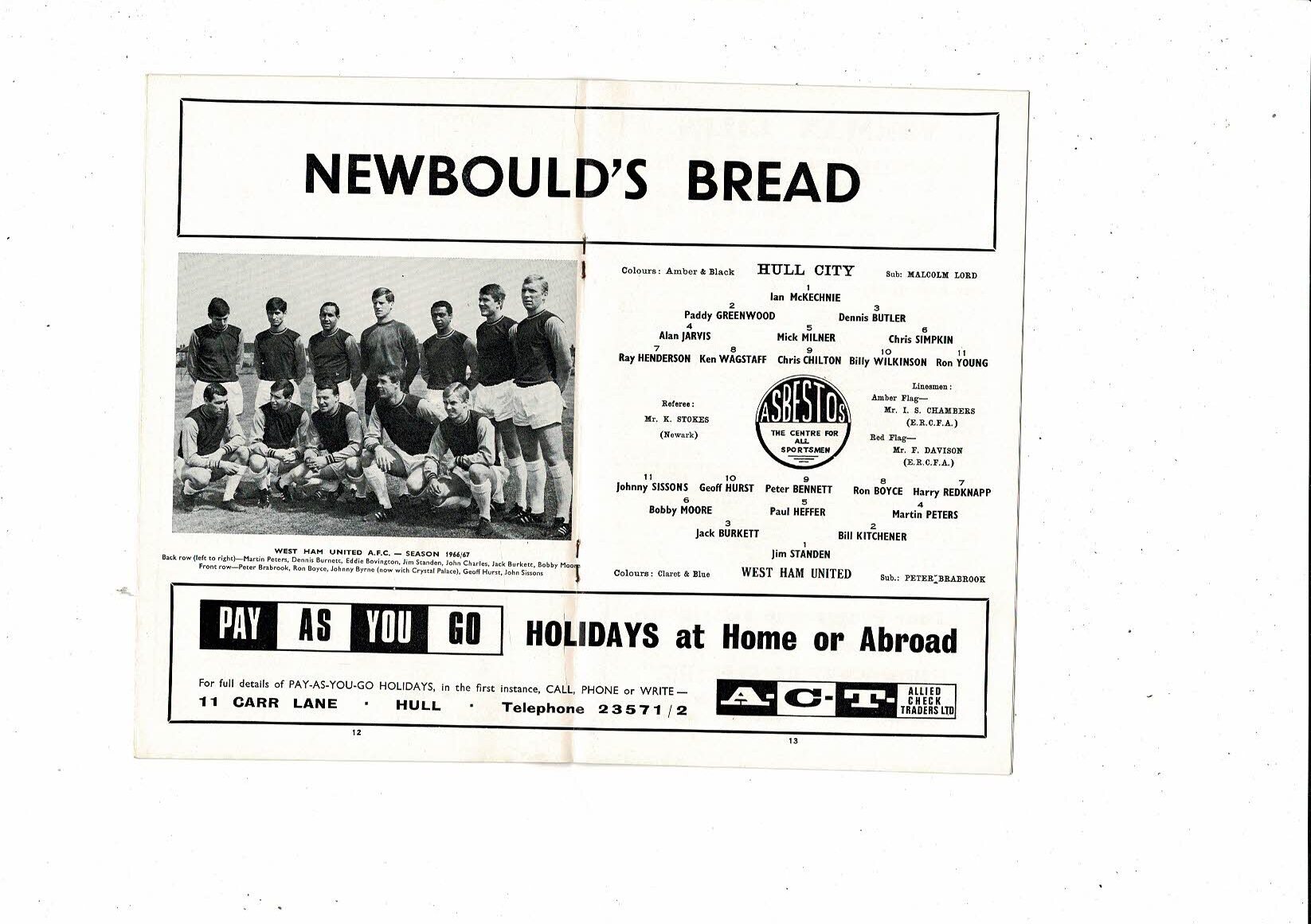 Hull City v West Ham United Friendly Football Programme 1966/67