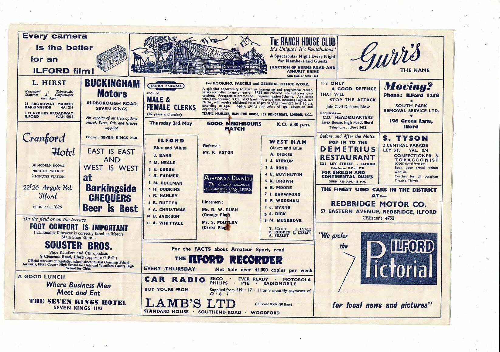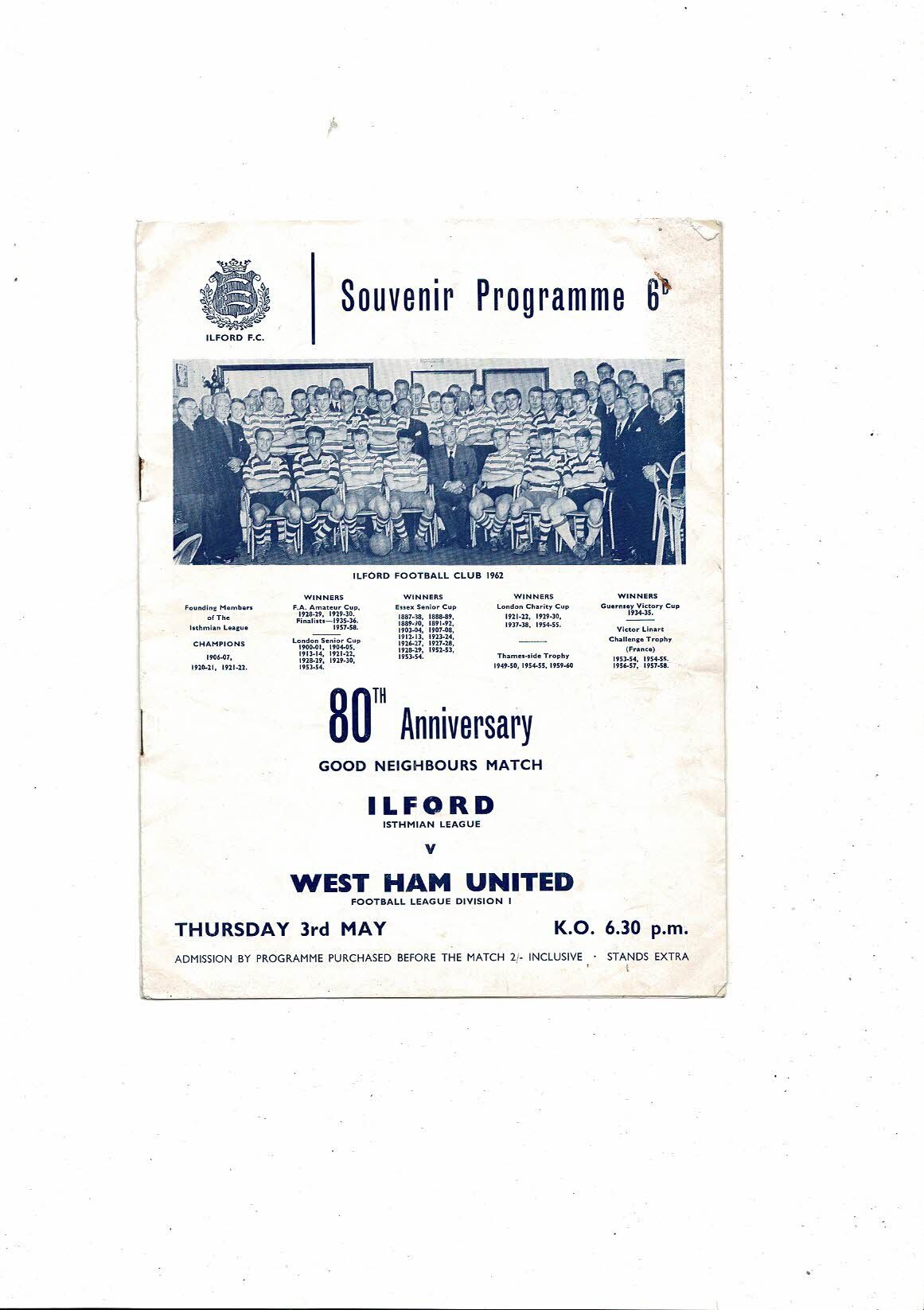 Ilford v West Ham United 80th Anniversary Friendly 1961/1962