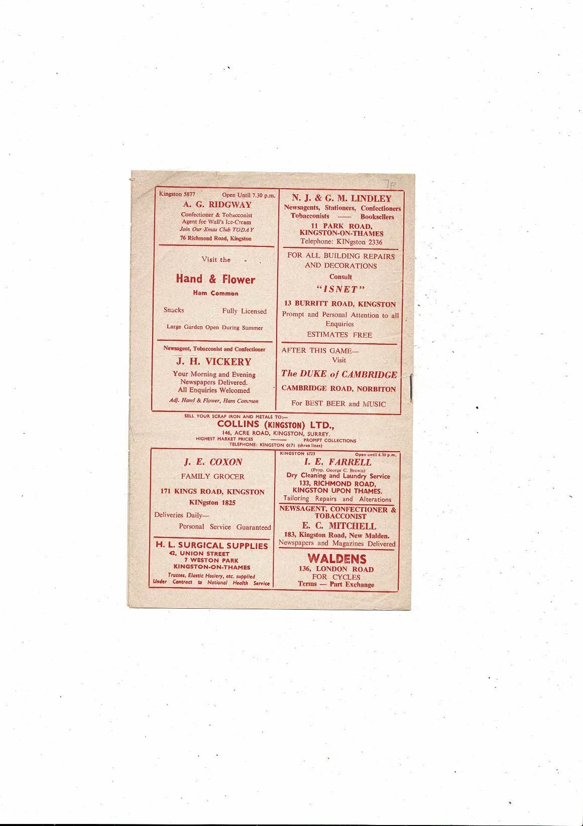 This Original Football Programme is creased & folded in one corner with many tiny nic's. No handwriting. Please see scans.