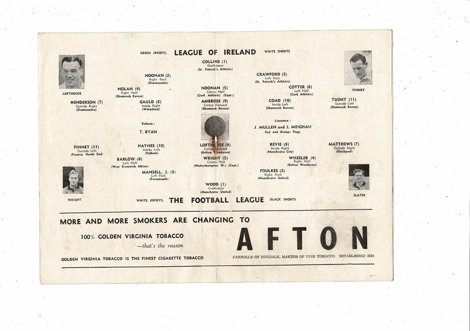 League of Ireland v Football League Friendly Football Programme 1954/55