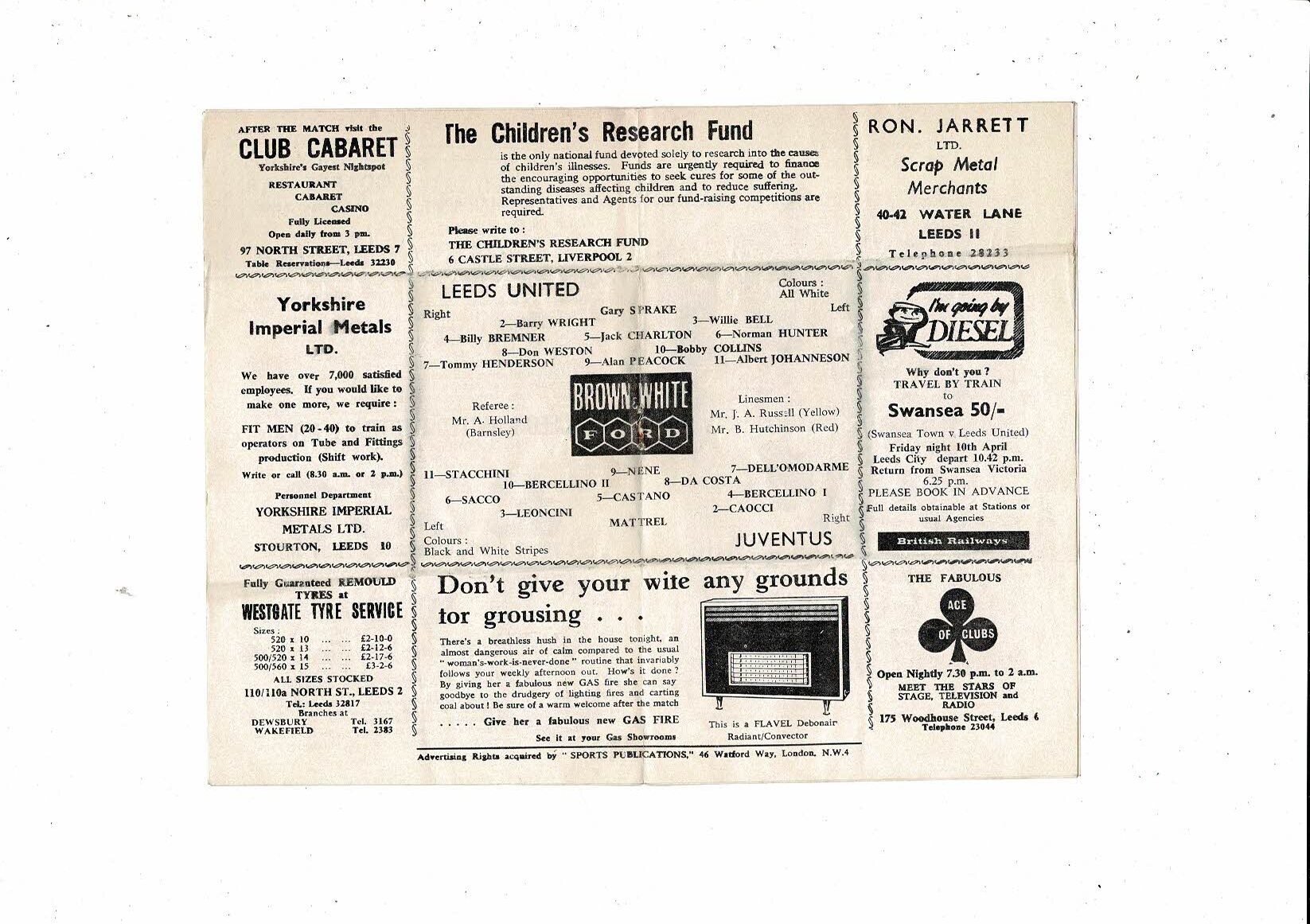 Leeds United v Juventus Friendly Football Programme 1963/64