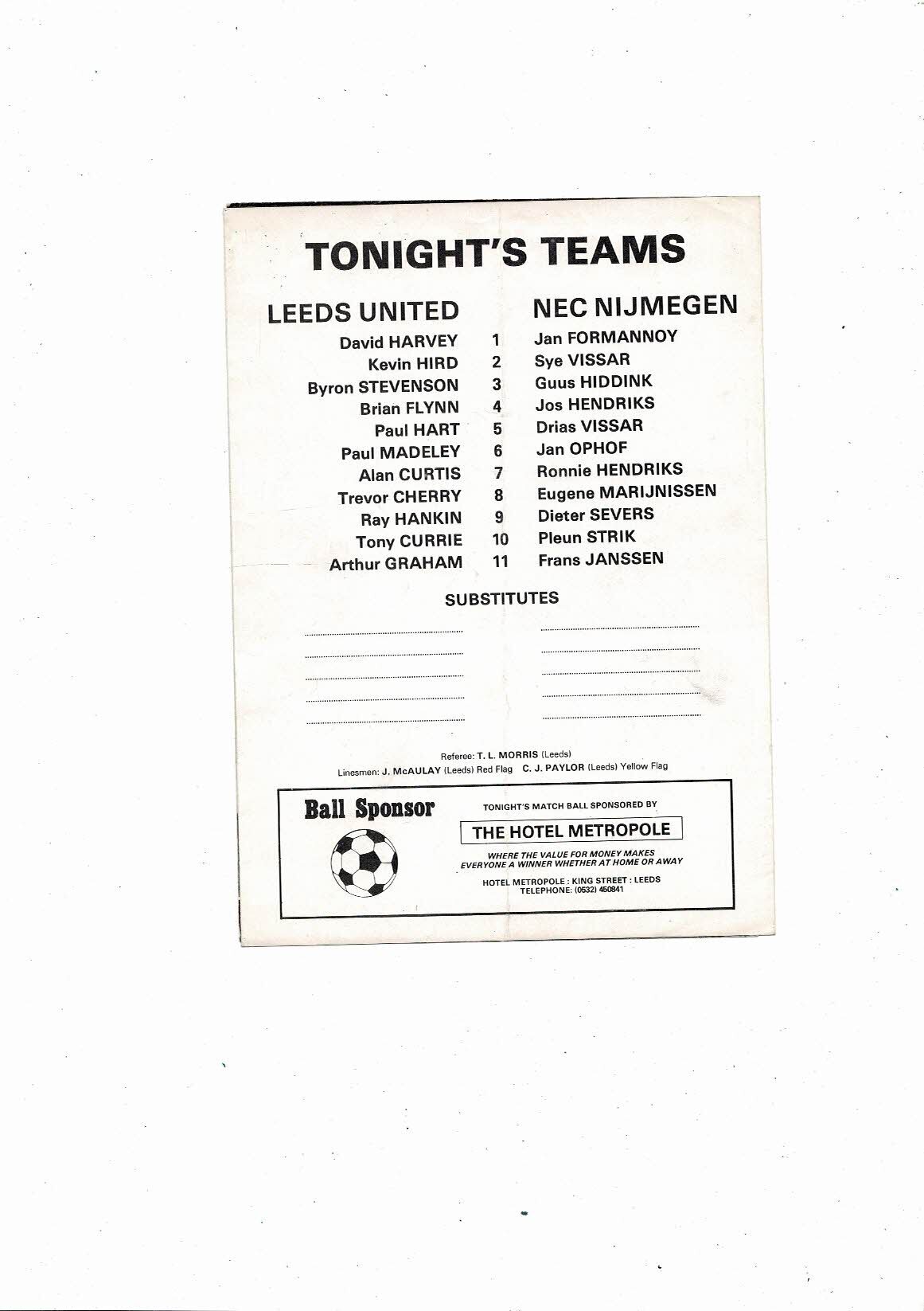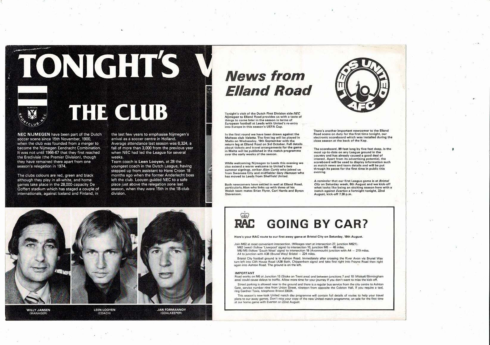 Leeds United v NEC Nijmegen Friendly Football Programme 1979/80