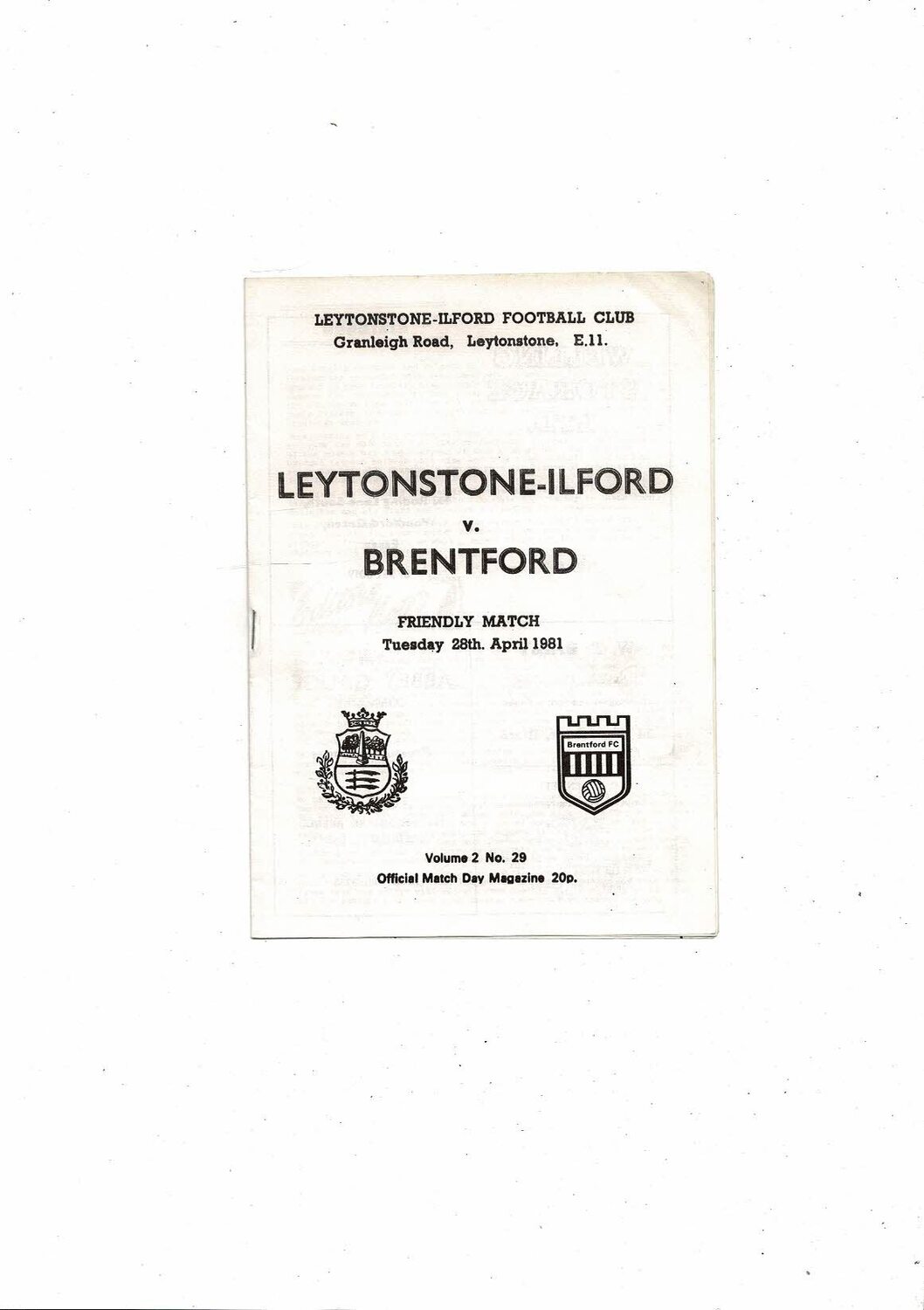 Leytonstone-Ilford v Brentford Friendly Football Programme 1980/81