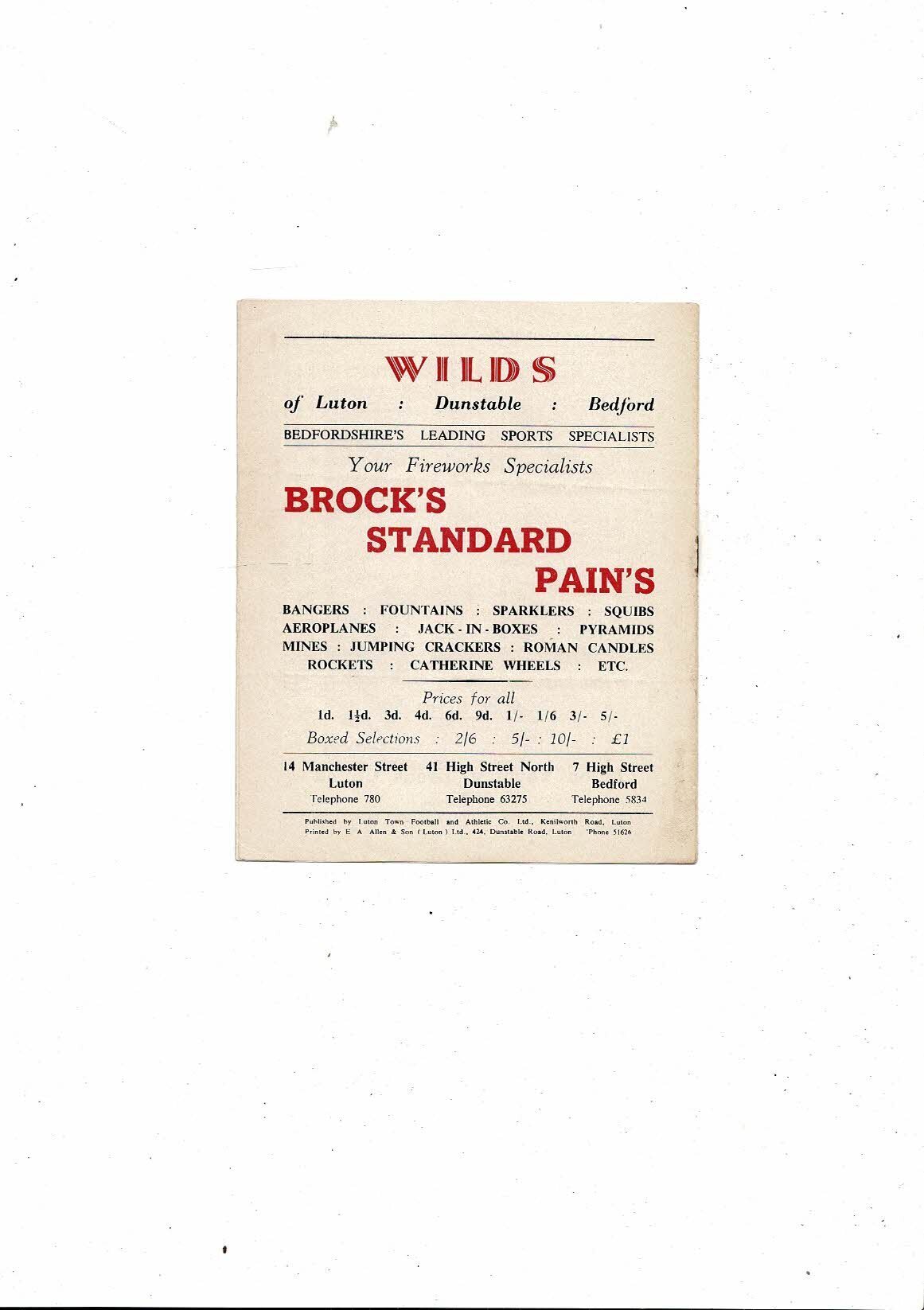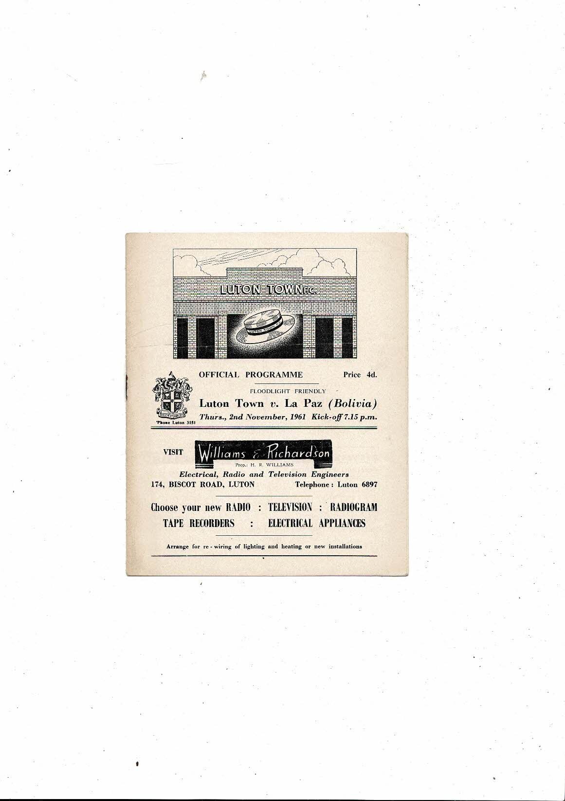 Luton Town v La Paz (Bolivia) Friendly Football Programme 1961/62