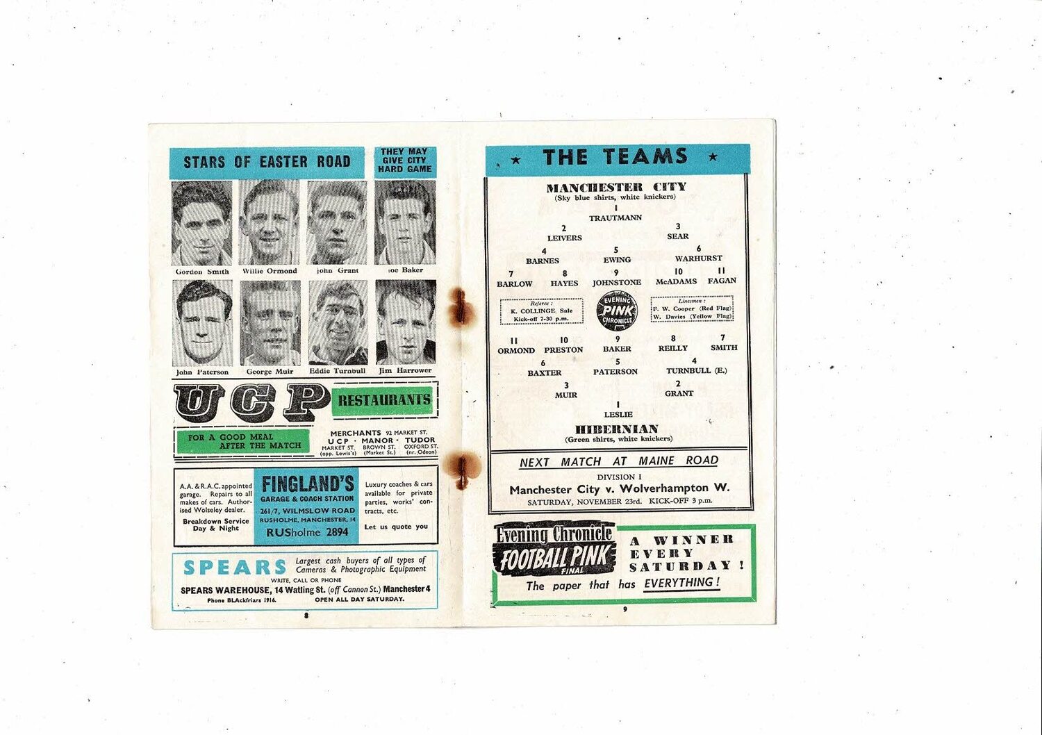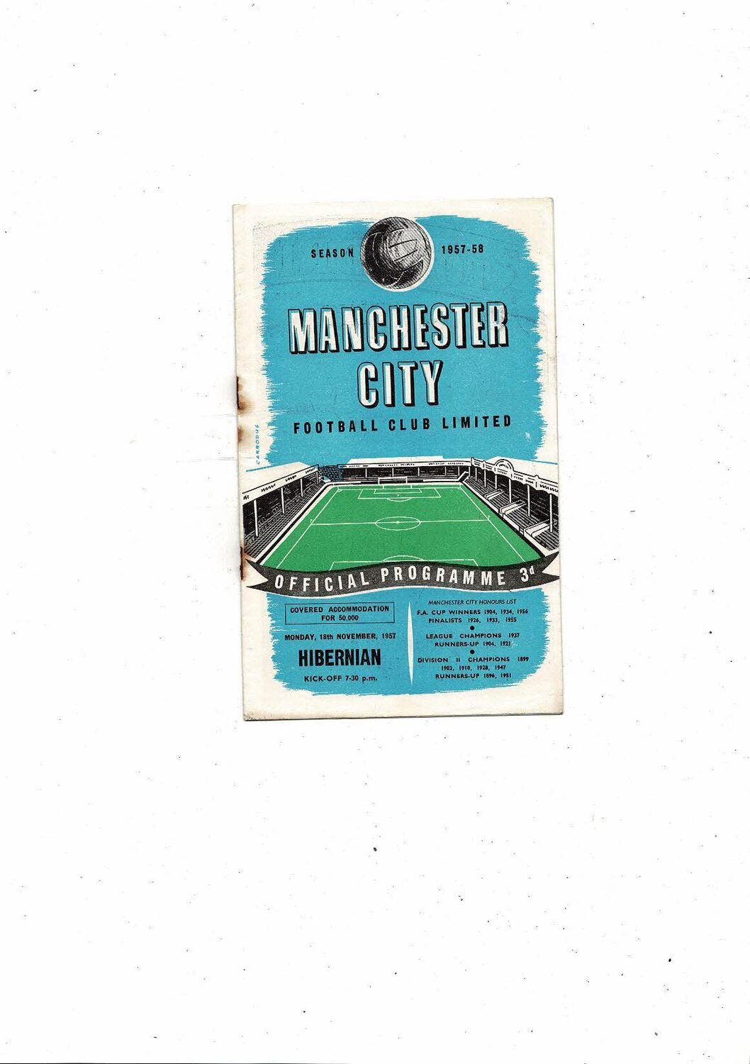Manchester City v Hibernian Friendly Football Programme 1957/58
