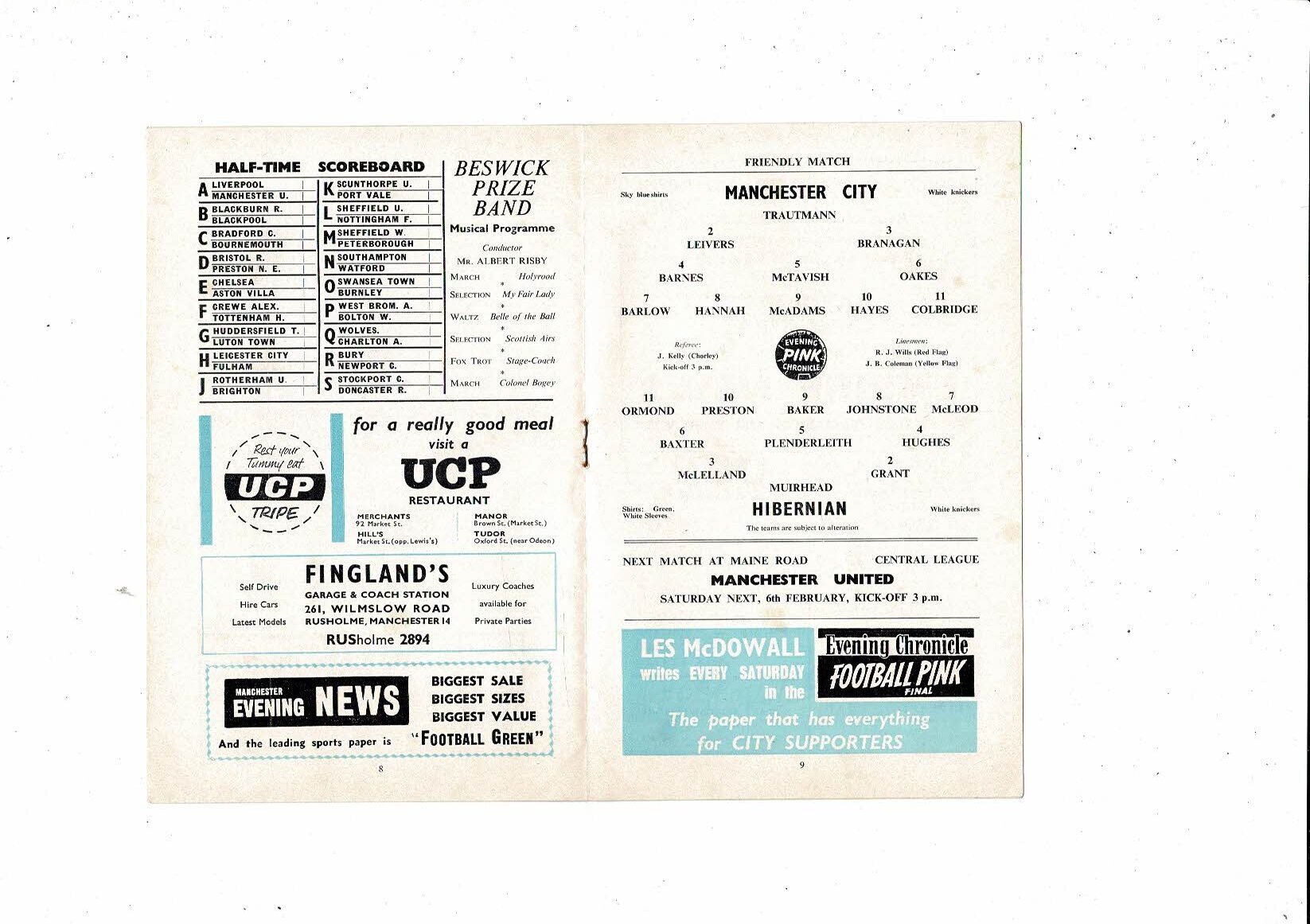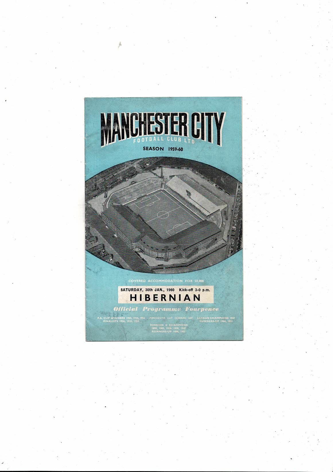 Manchester City v Hibernian Friendly Football Programme 1959/60