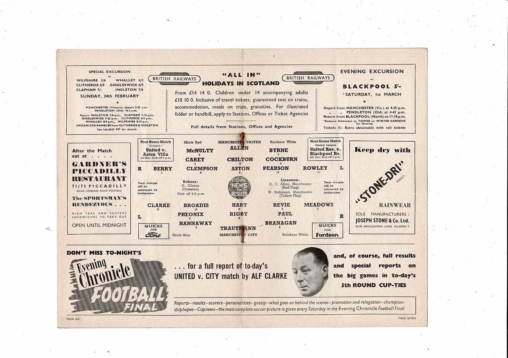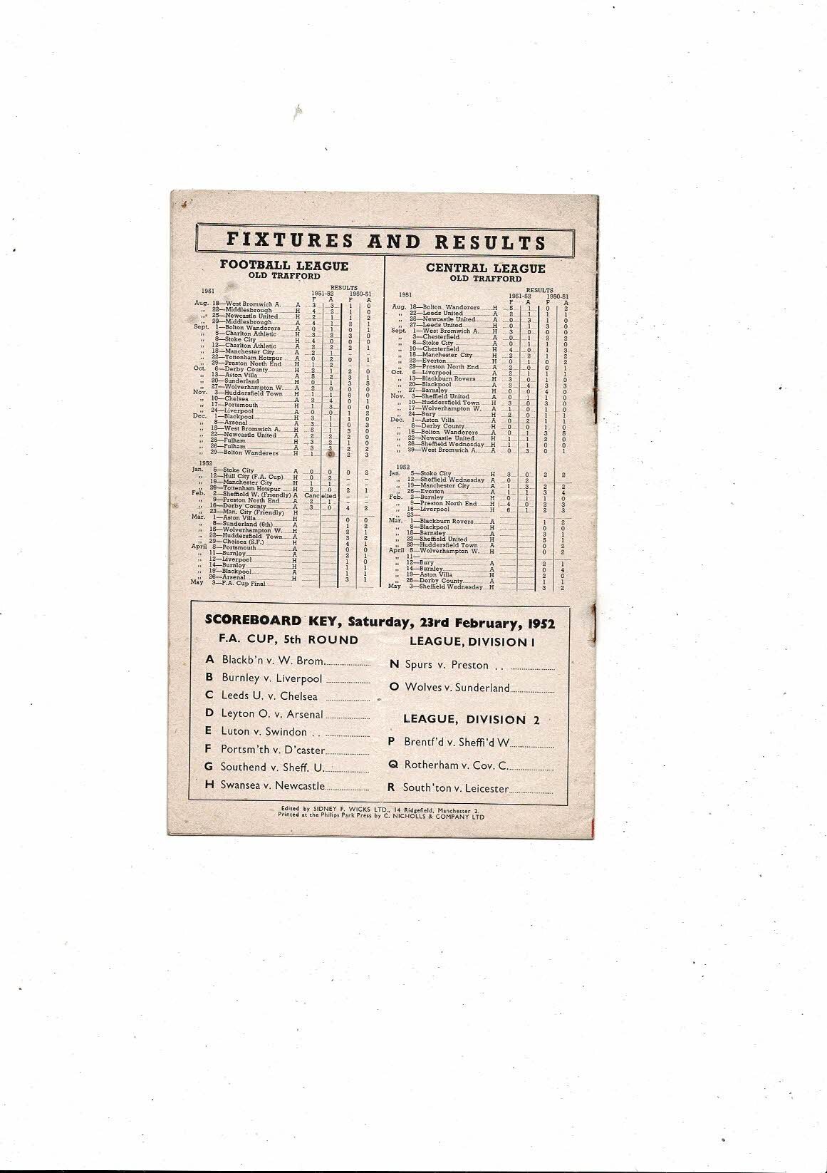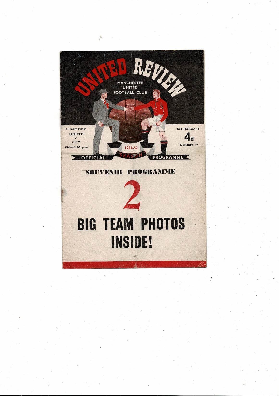 Manchester United v Manchester City Friendly Football Programme 1951/52