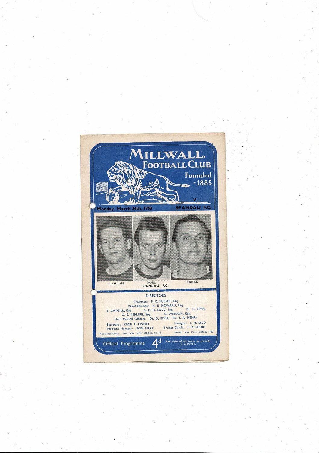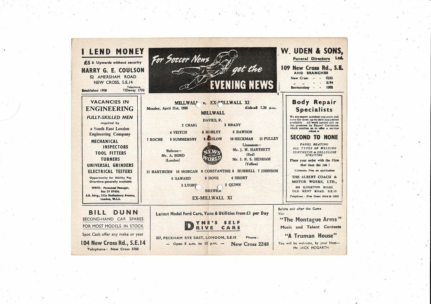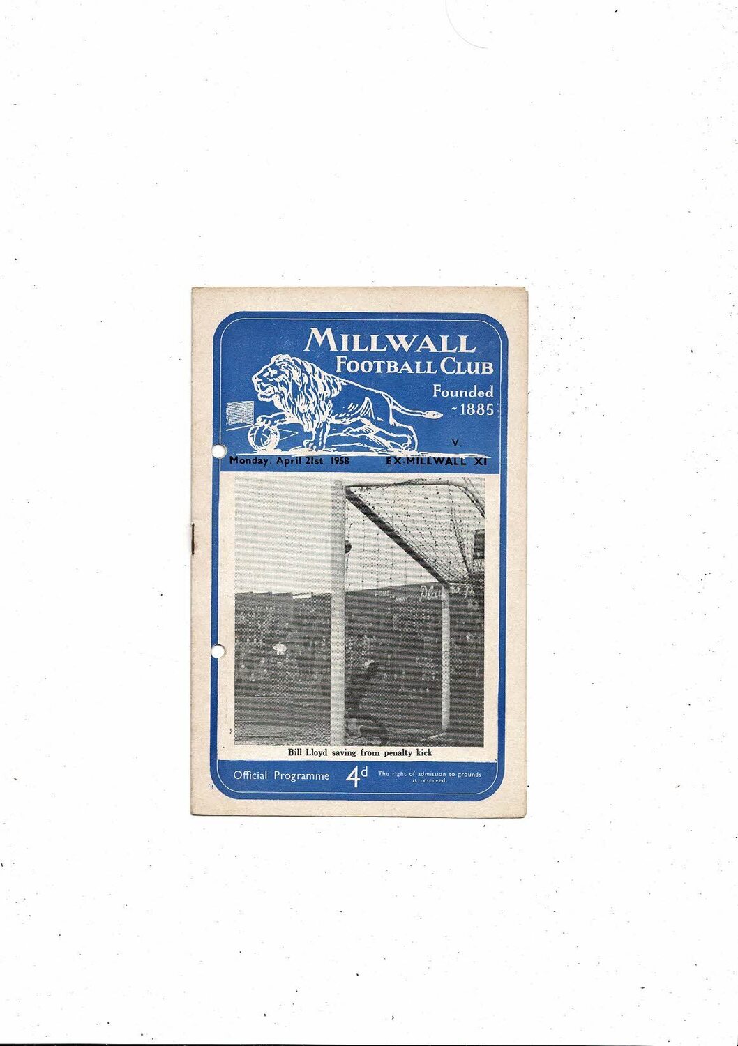 Millwall v Ex Millwall X1 Friendly Football Programme 1957/58