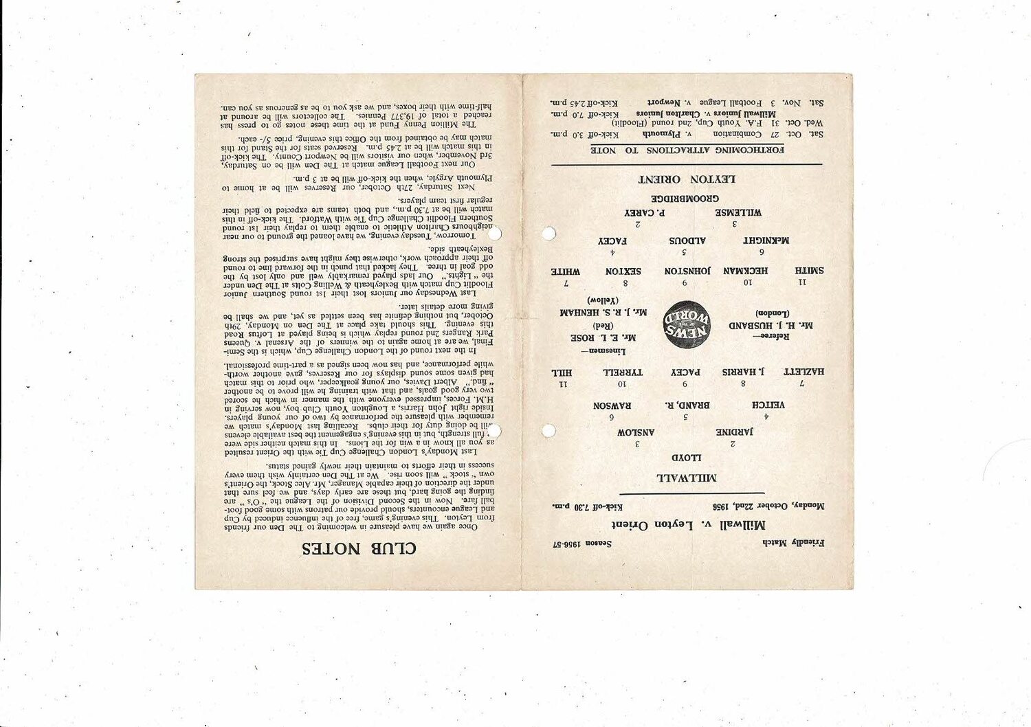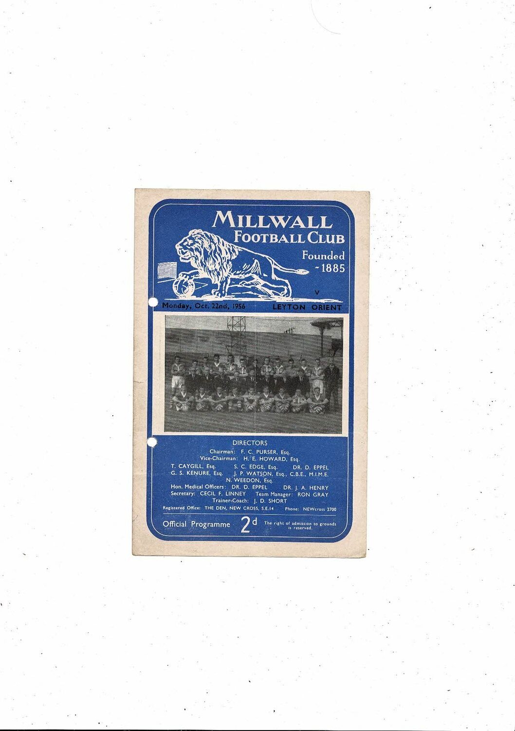 Millwall v Leyton Orient Friendly Football Programme 1956/57