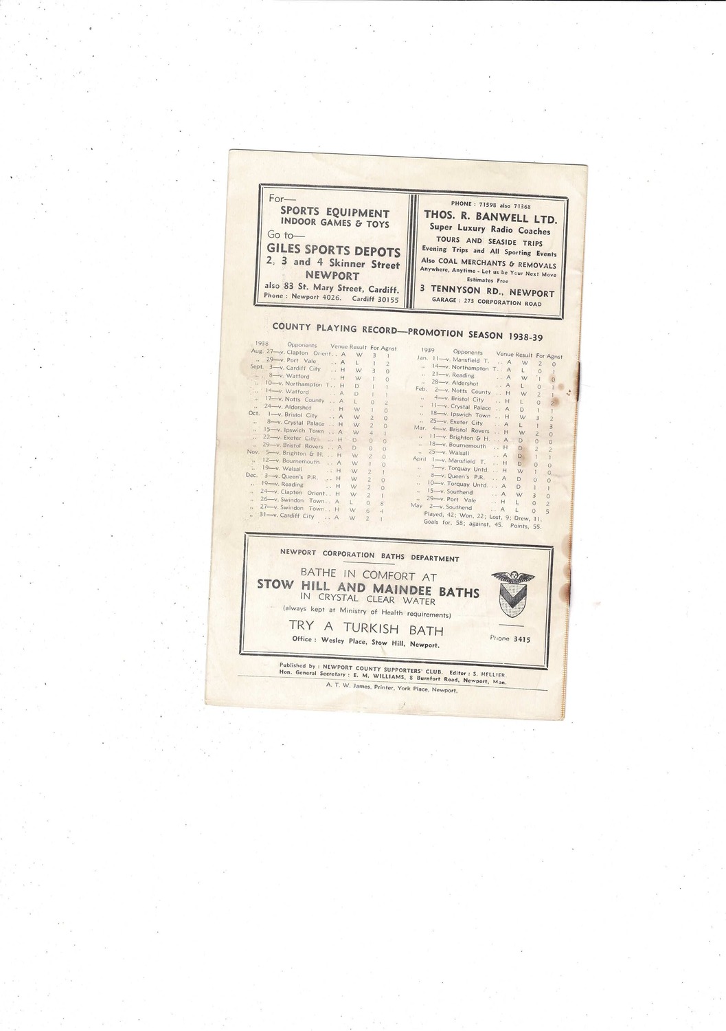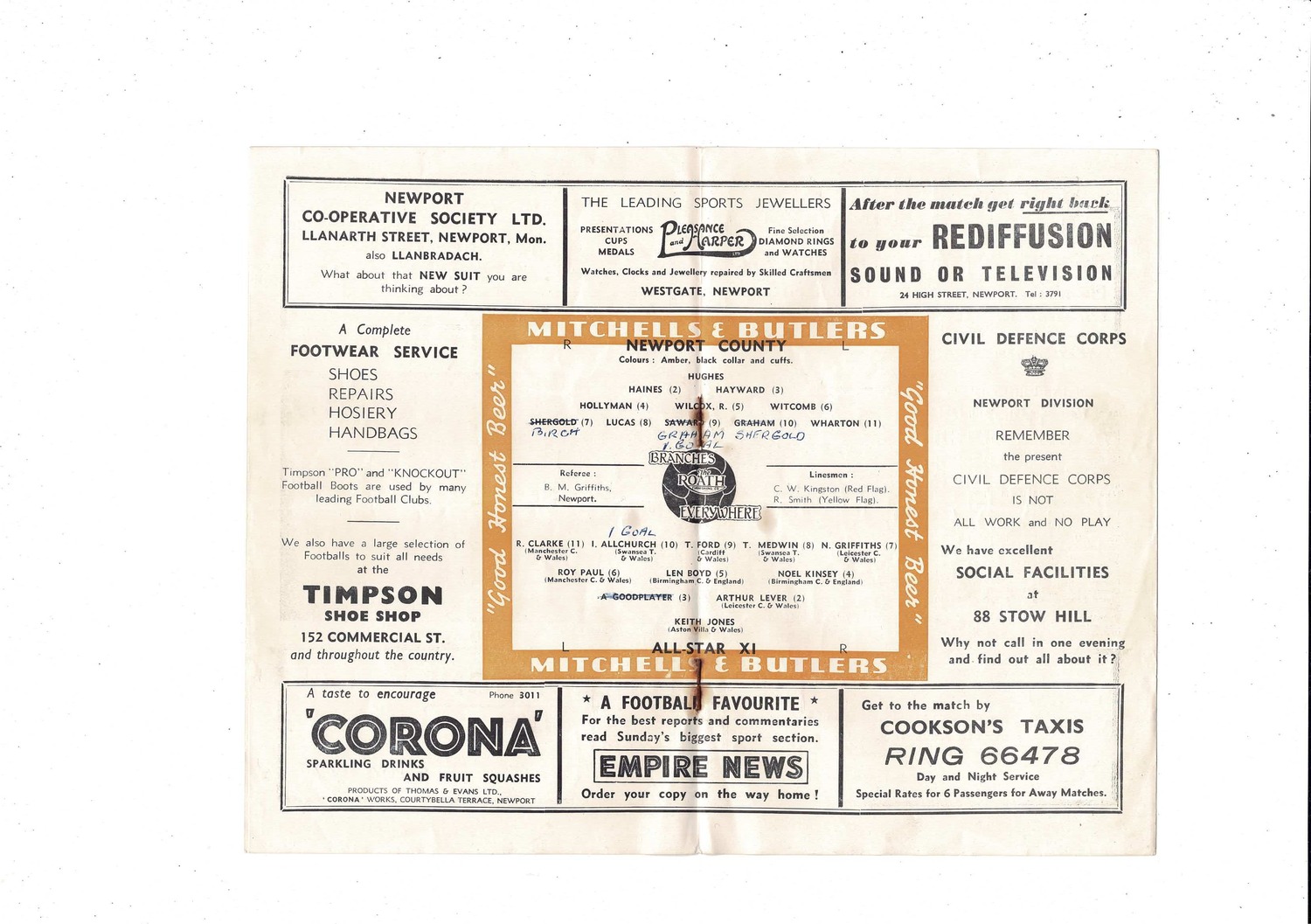 Newport v All Star X1 Friendly Football Programme 1953/54