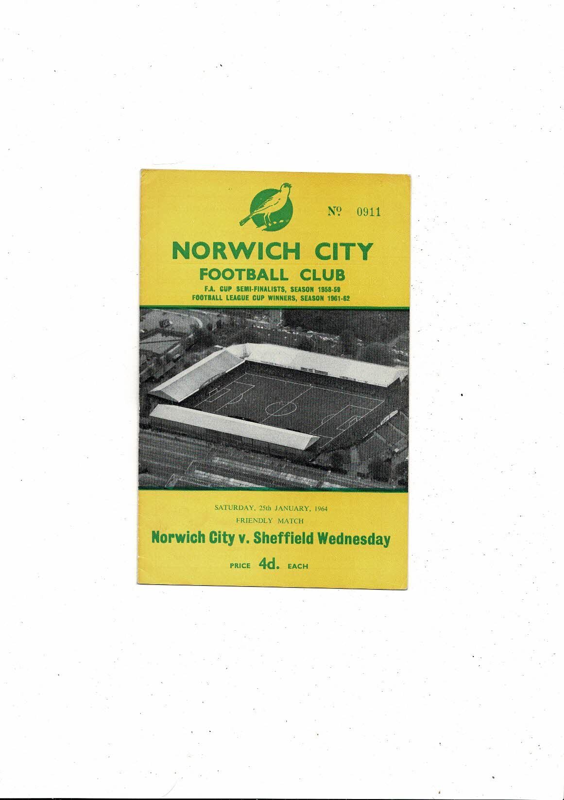 Norwich City v Sheffield Wednesday Friendly Football Programme 1963/64
