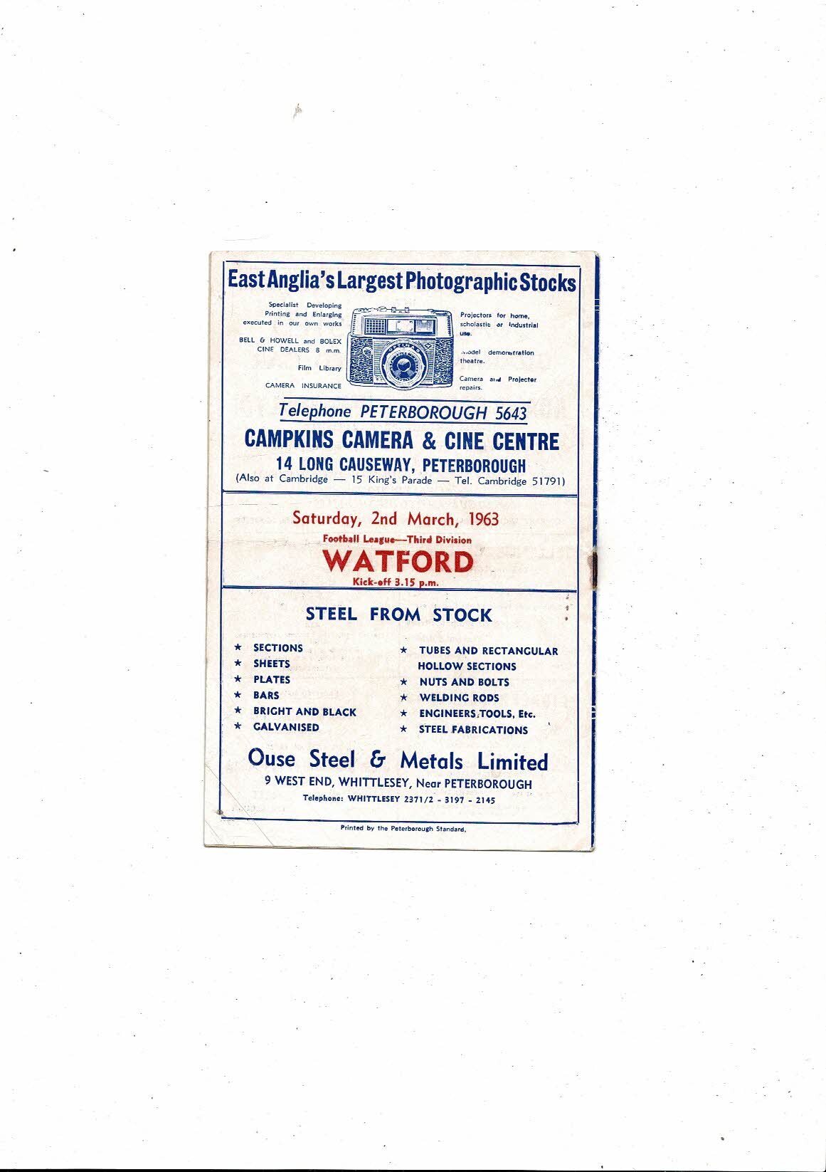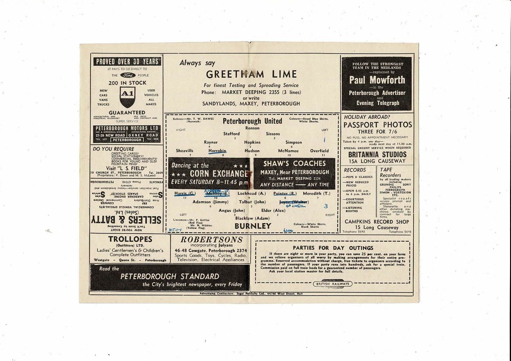 Peterborough United v Burnley Friendly Football Programme 1962/63