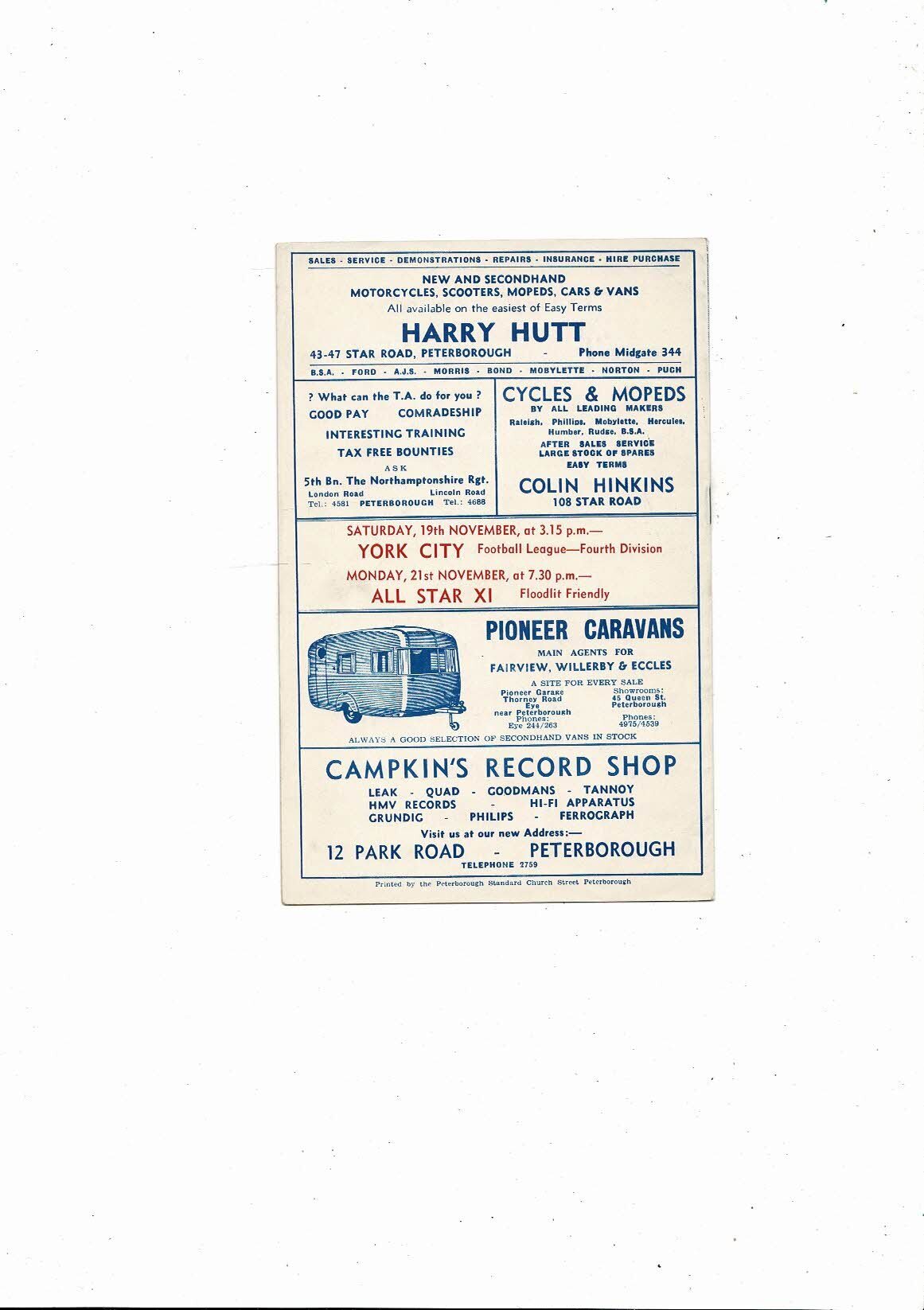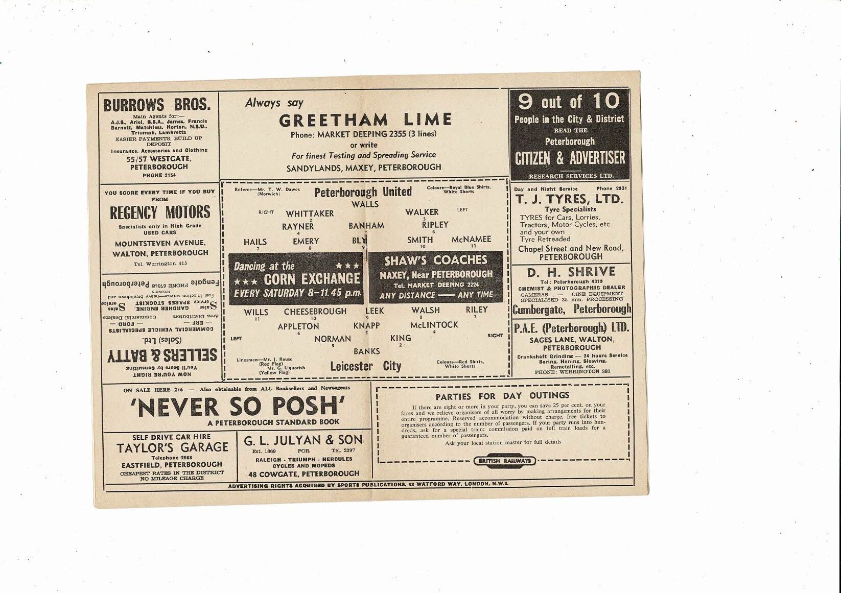 Peterborough United v Leicester City Friendly Football Programme 1960/61