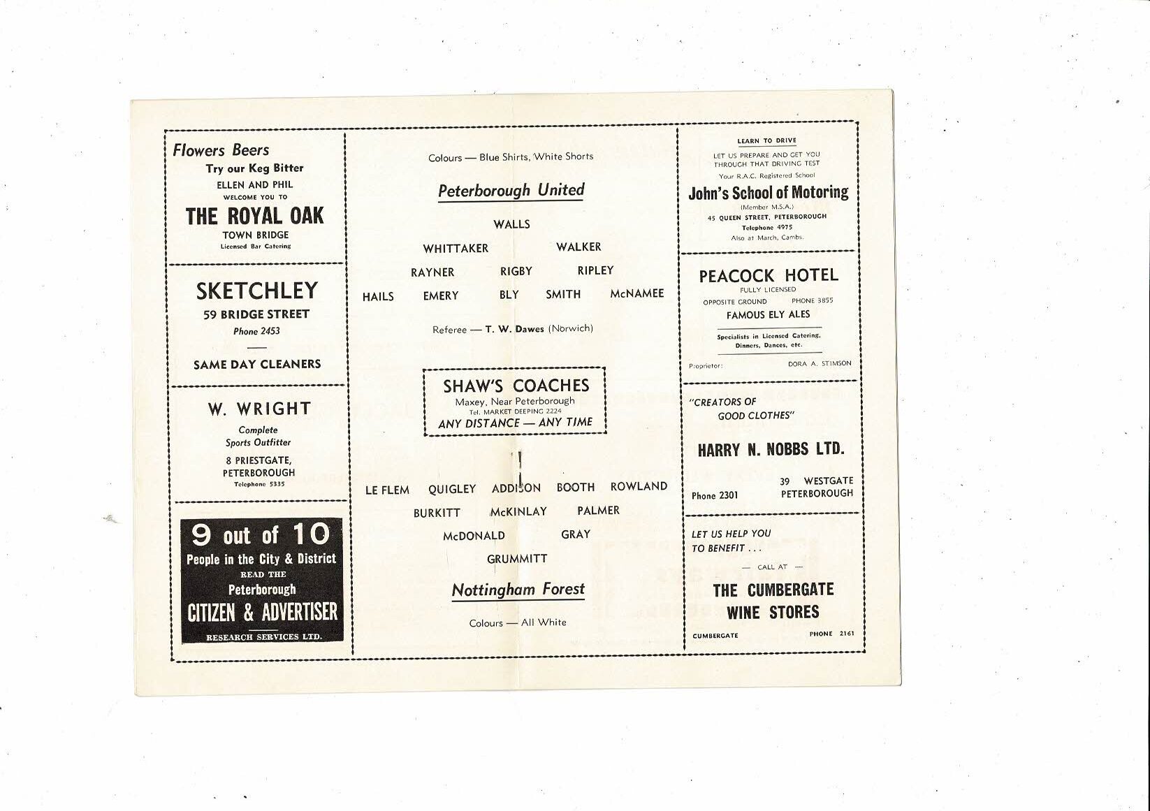 Peterborough United v Nottingham Forest Friendly Football Programme 1960/61