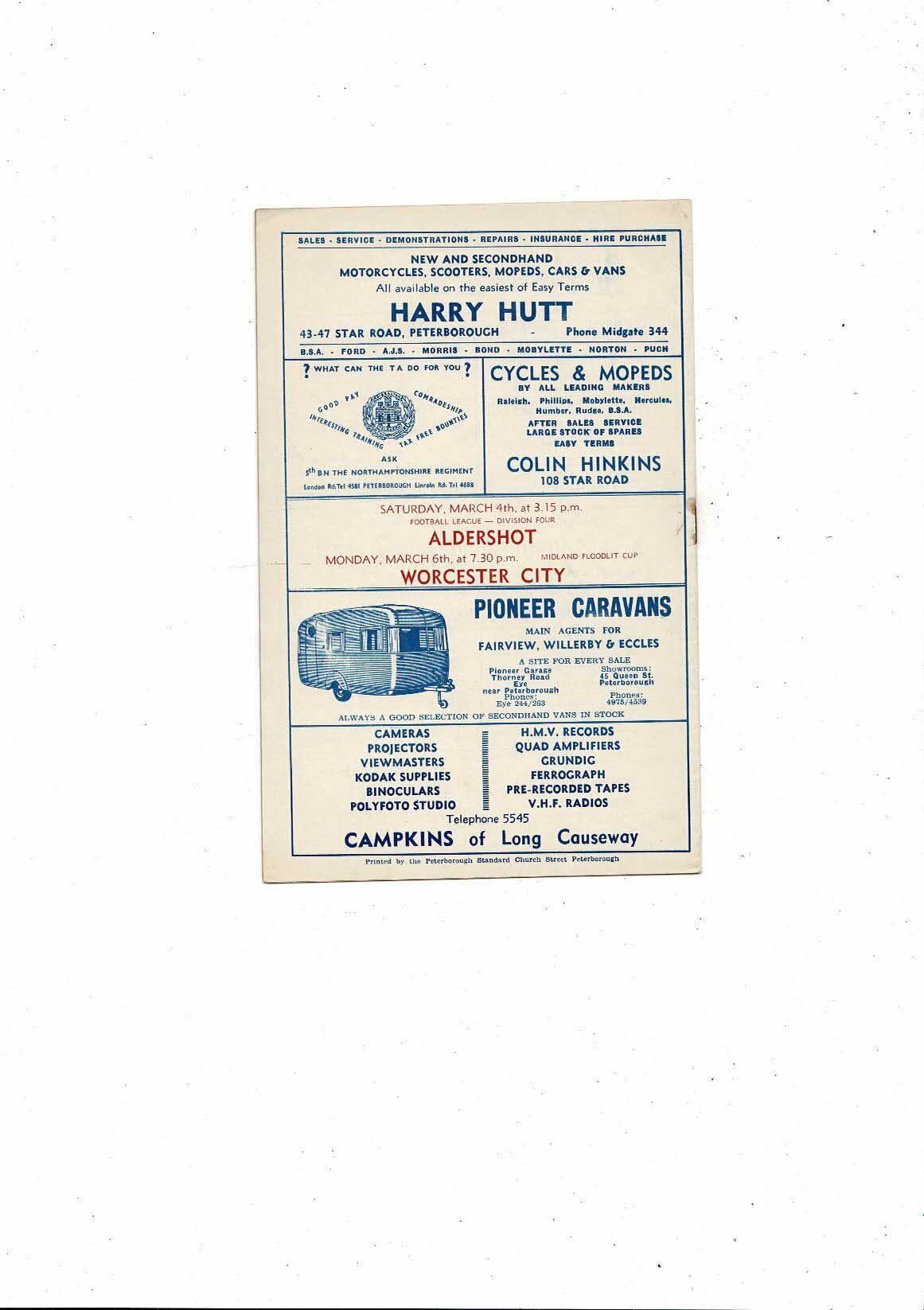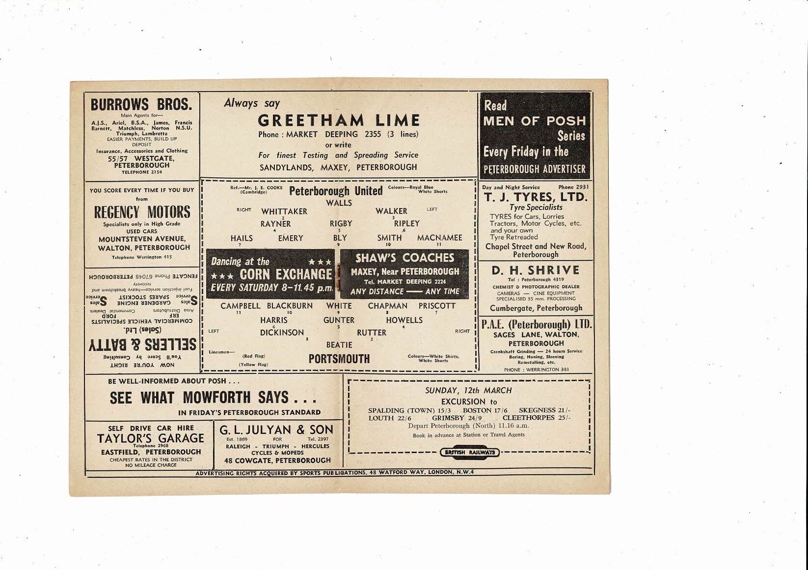 Peterborough United v Portsmouth Friendly Football Programme 1960/61