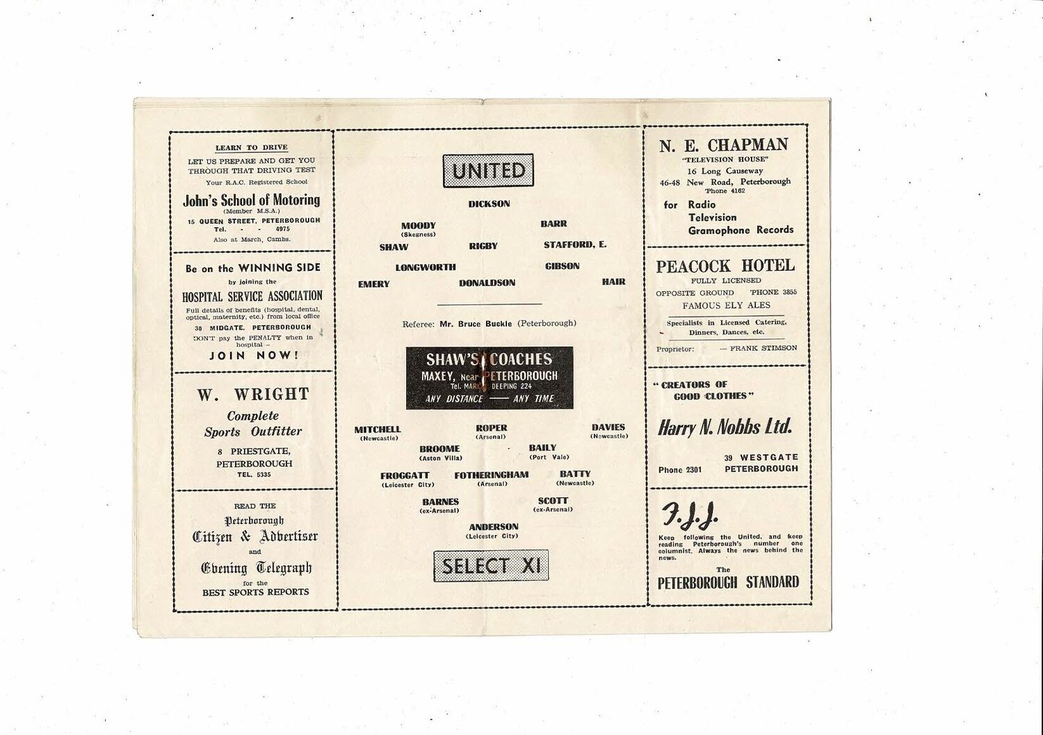 Peterborough United v Select X1 Friendly Football Programme 1955/56
