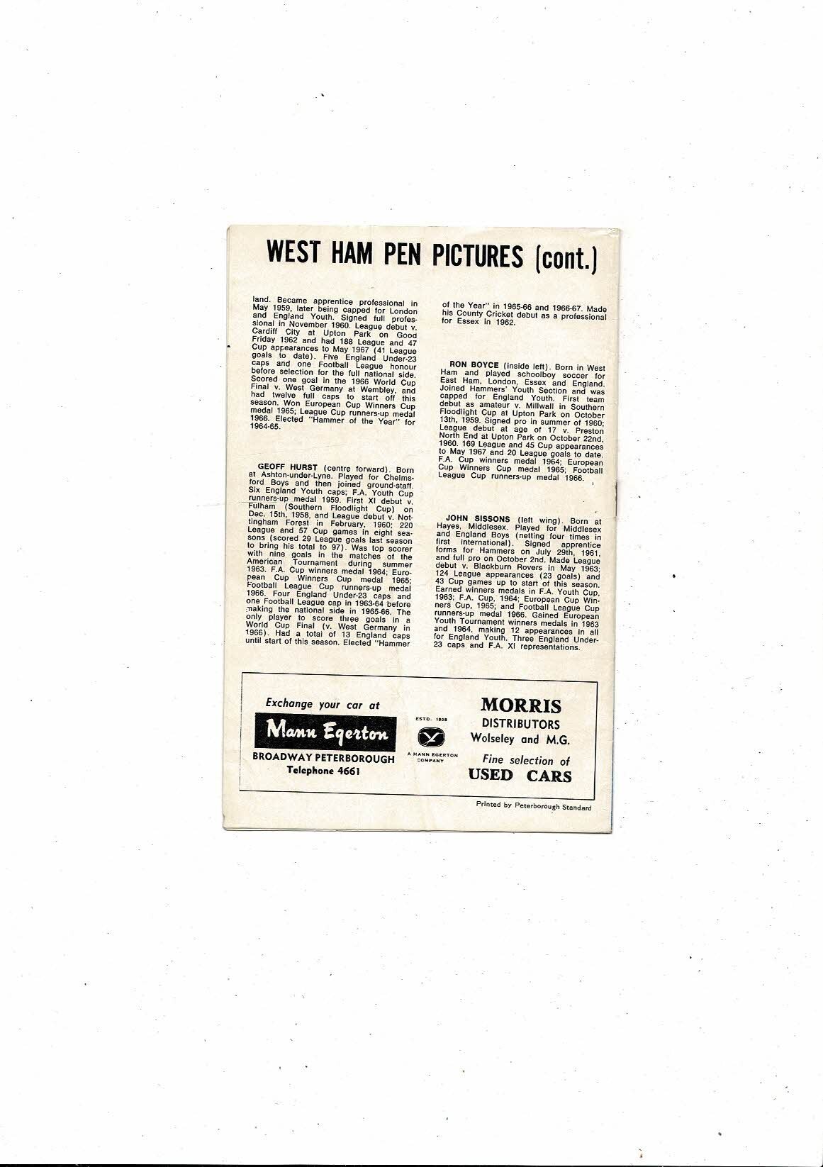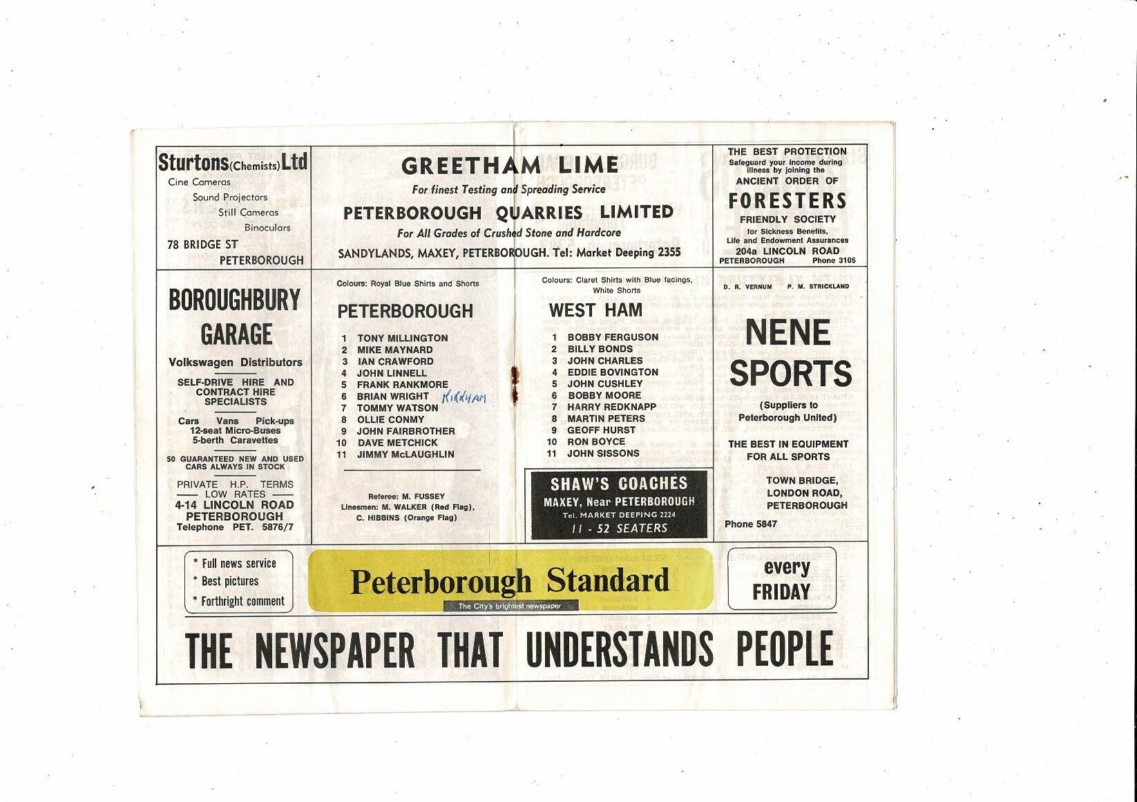 Peterborough United v West Ham United Friendly Football Programme 1967/68