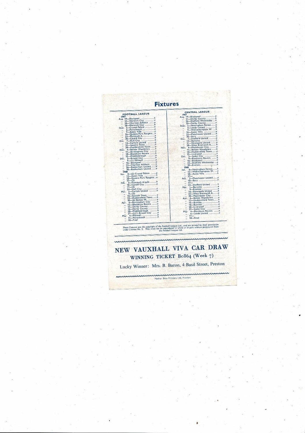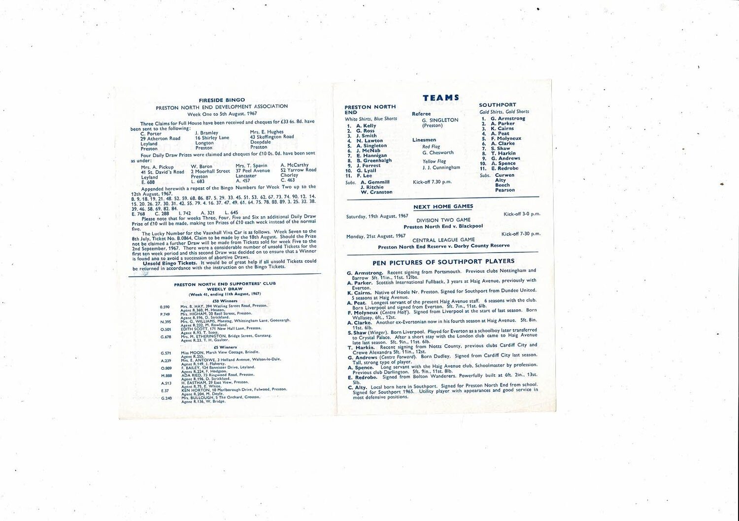 Preston v Southport Friendly Football Programme 1967/68
