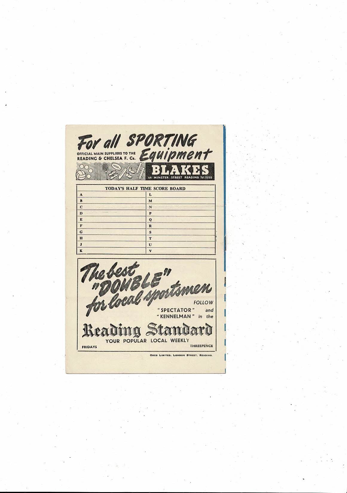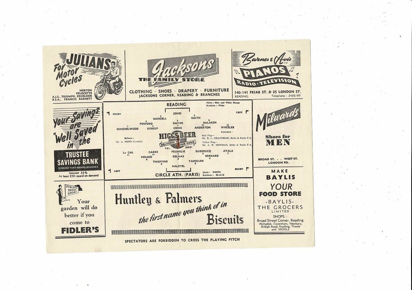Reading v Circle Athletic (Paris) Friendly Football Programme 1955/56