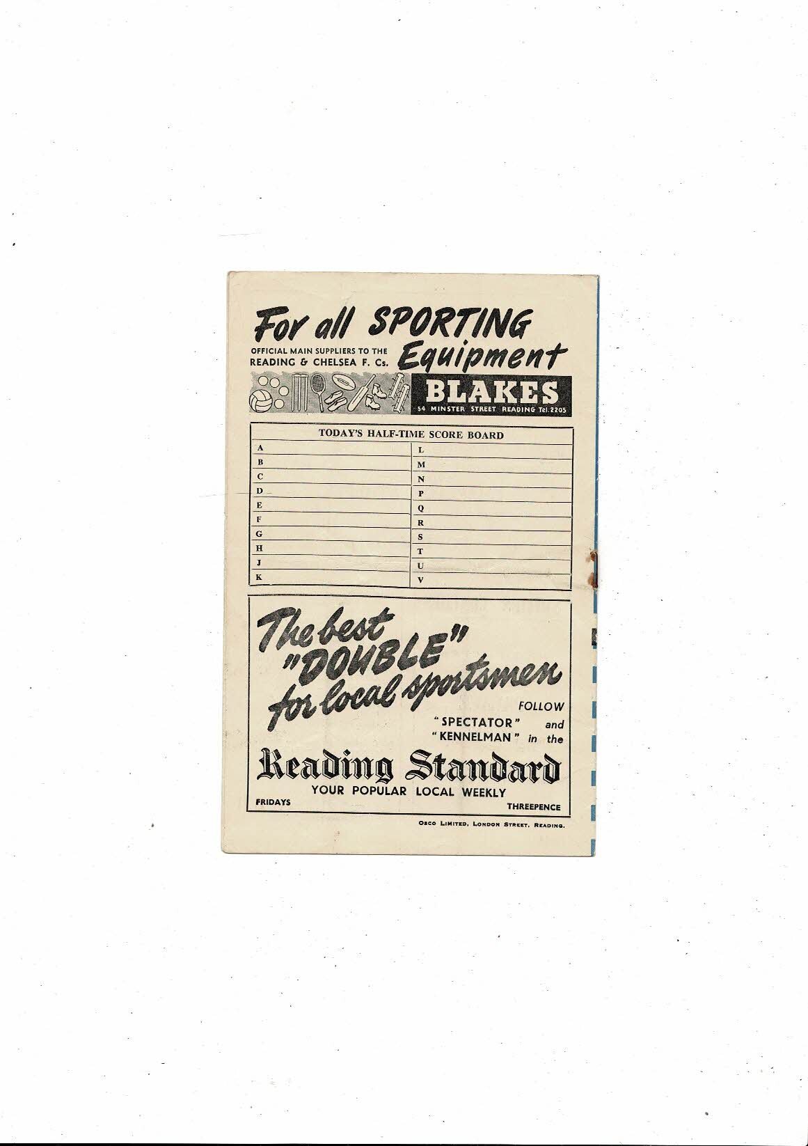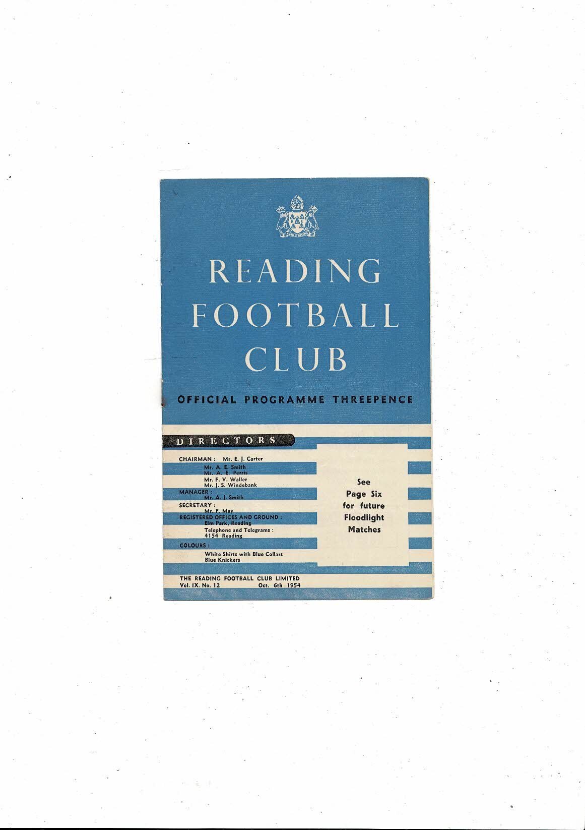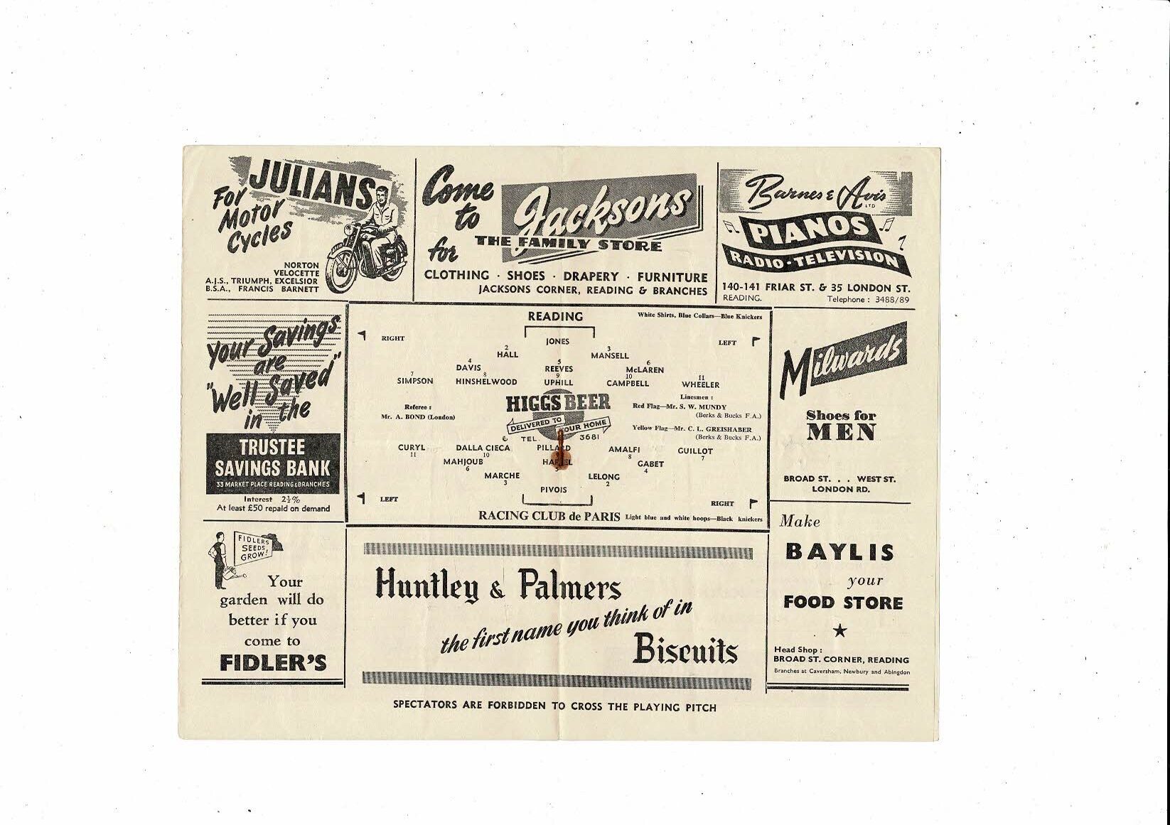 Reading v Racing Club de Paris Friendly Football Programme 1954/55