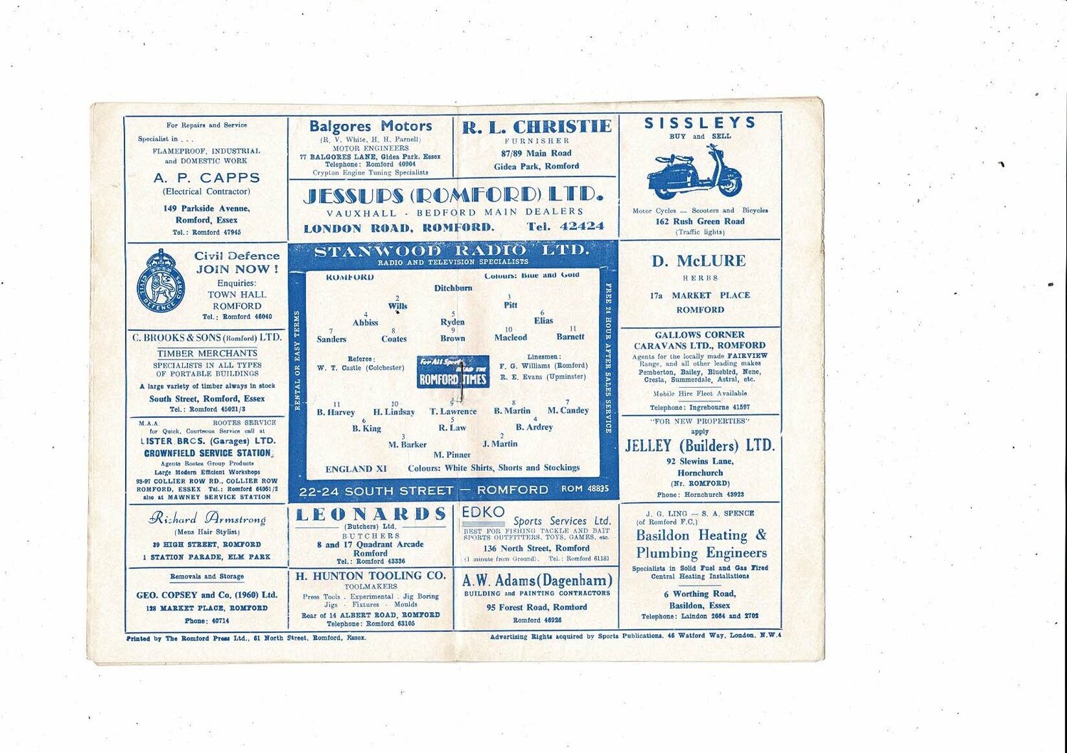 Romford v England Amateur X1 Friendly Football Programme 1962/63