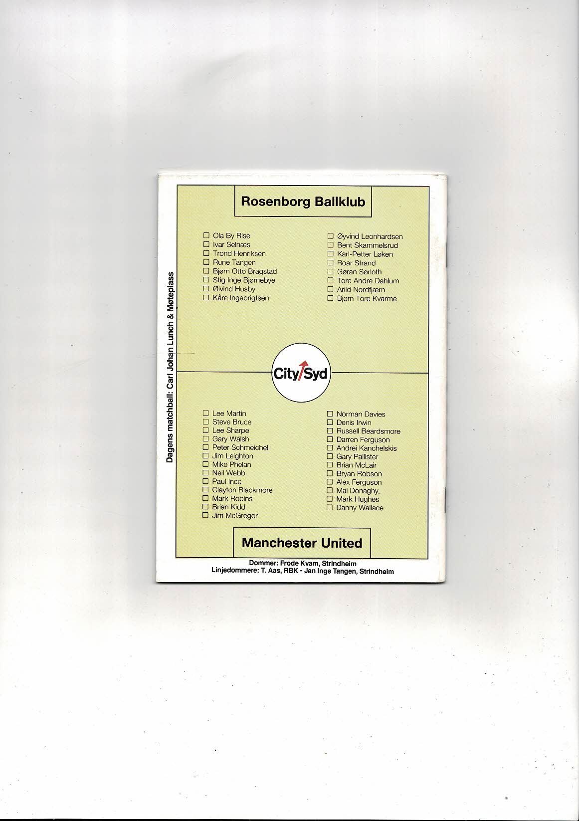 Rosenborg v Manchester United Friendly Football Programme 1992/93