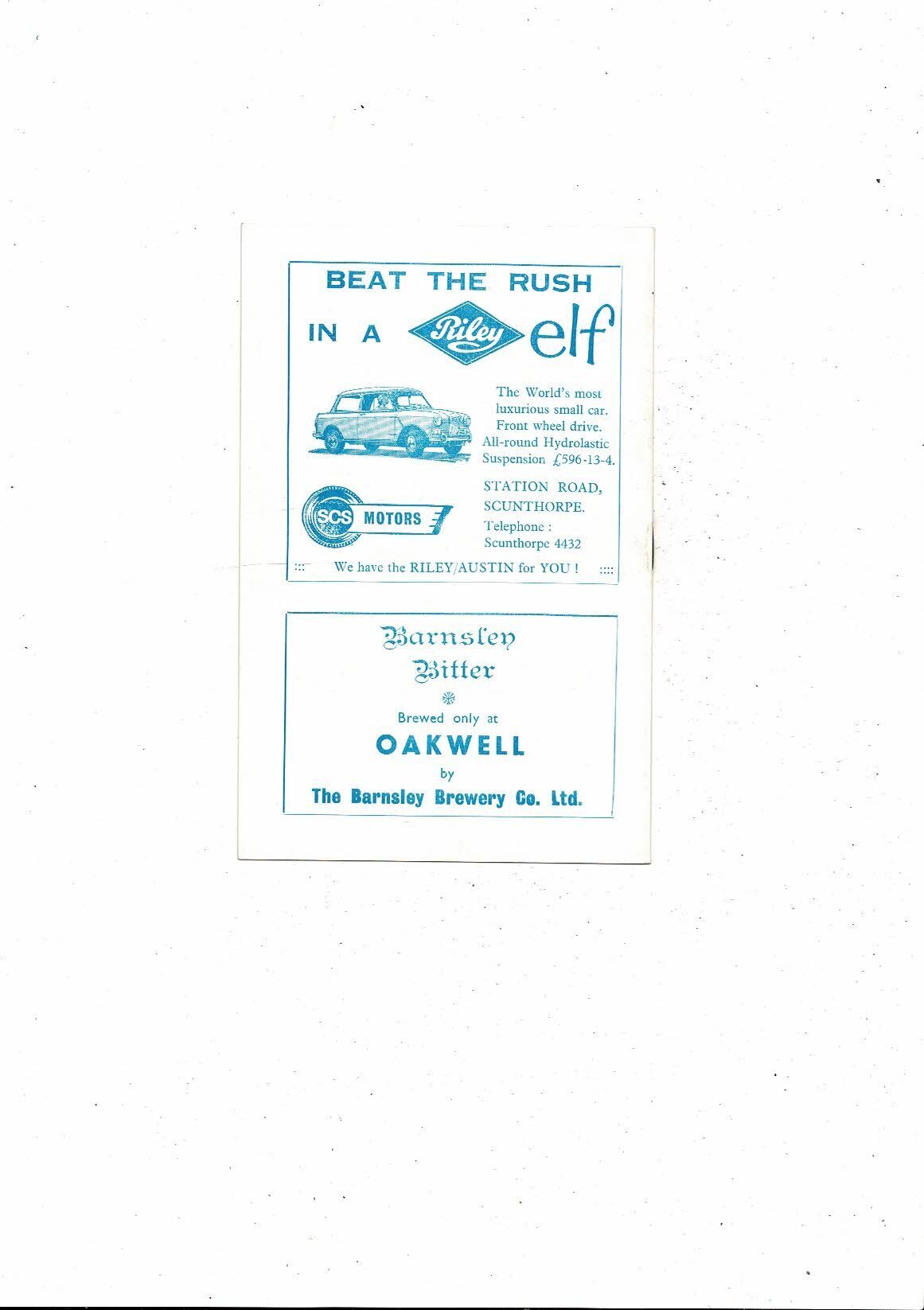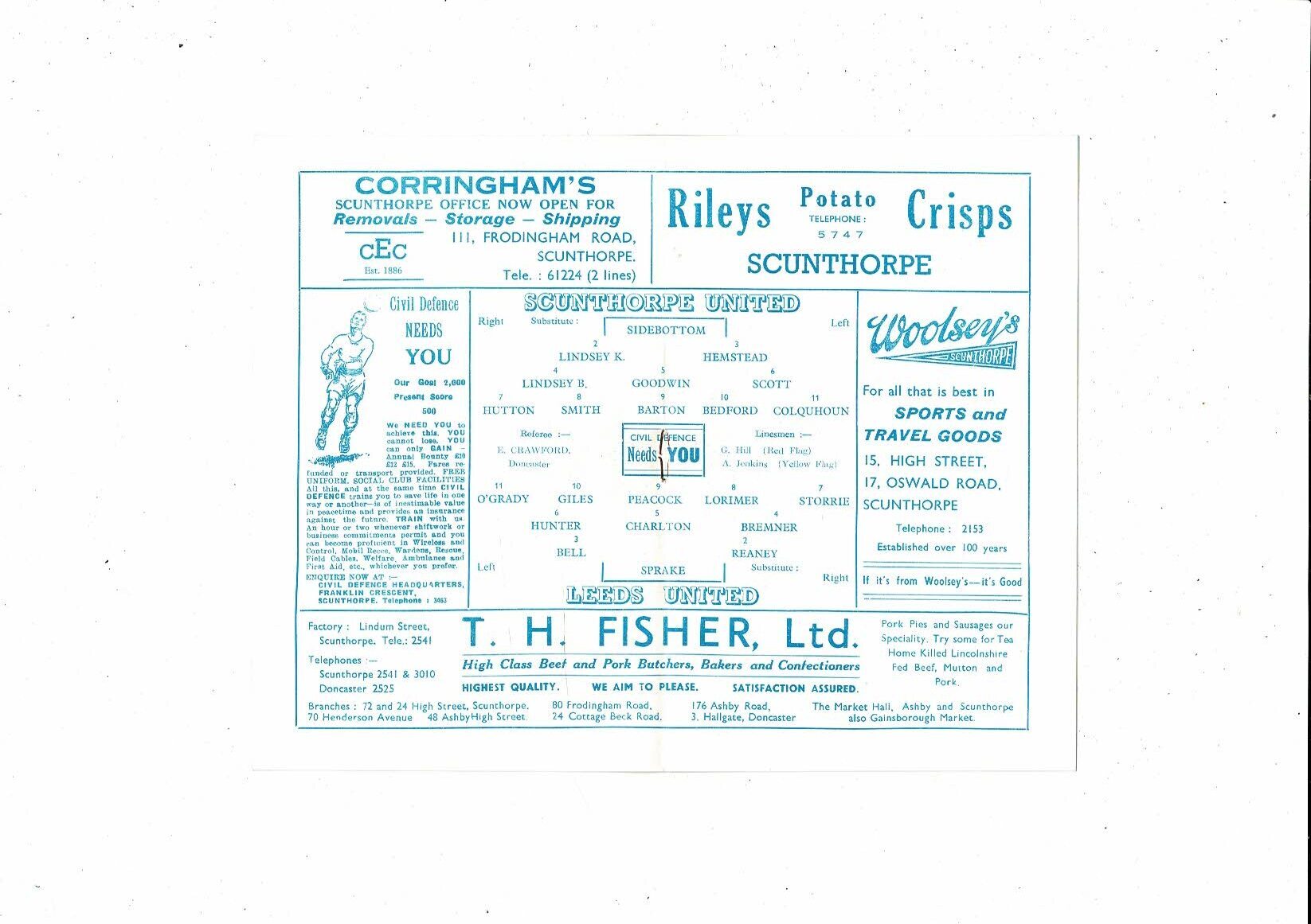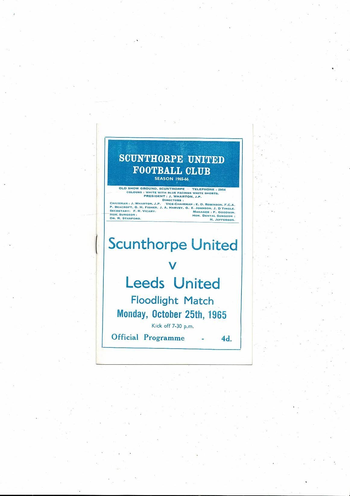 Scunthorpe United v Leeds United Friendly Football Programme 1965/66