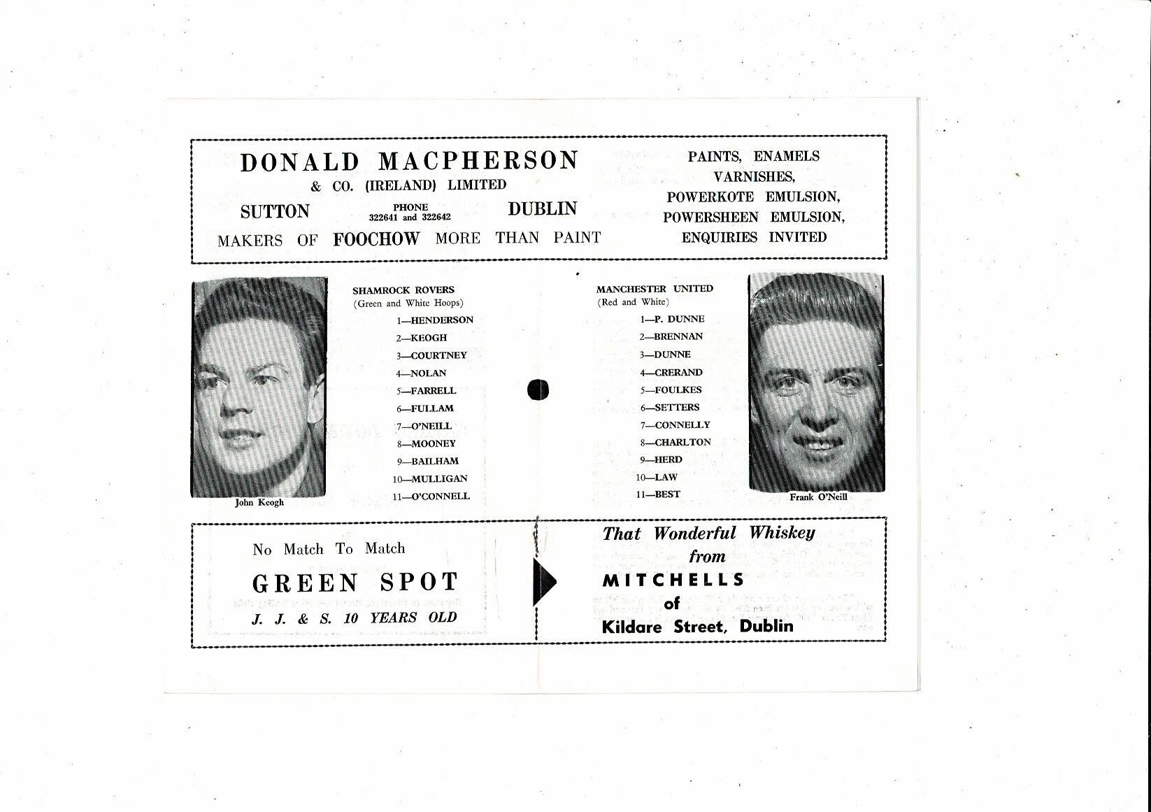 Shamrock Rovers v Manchester United Friendly Football Programme 1964/65