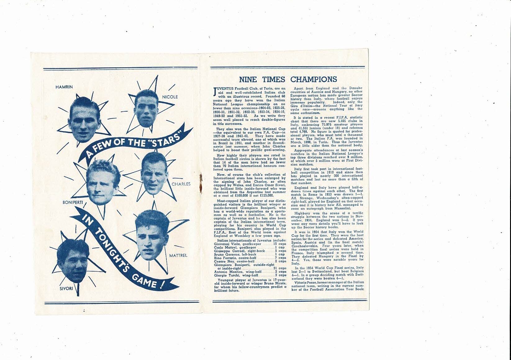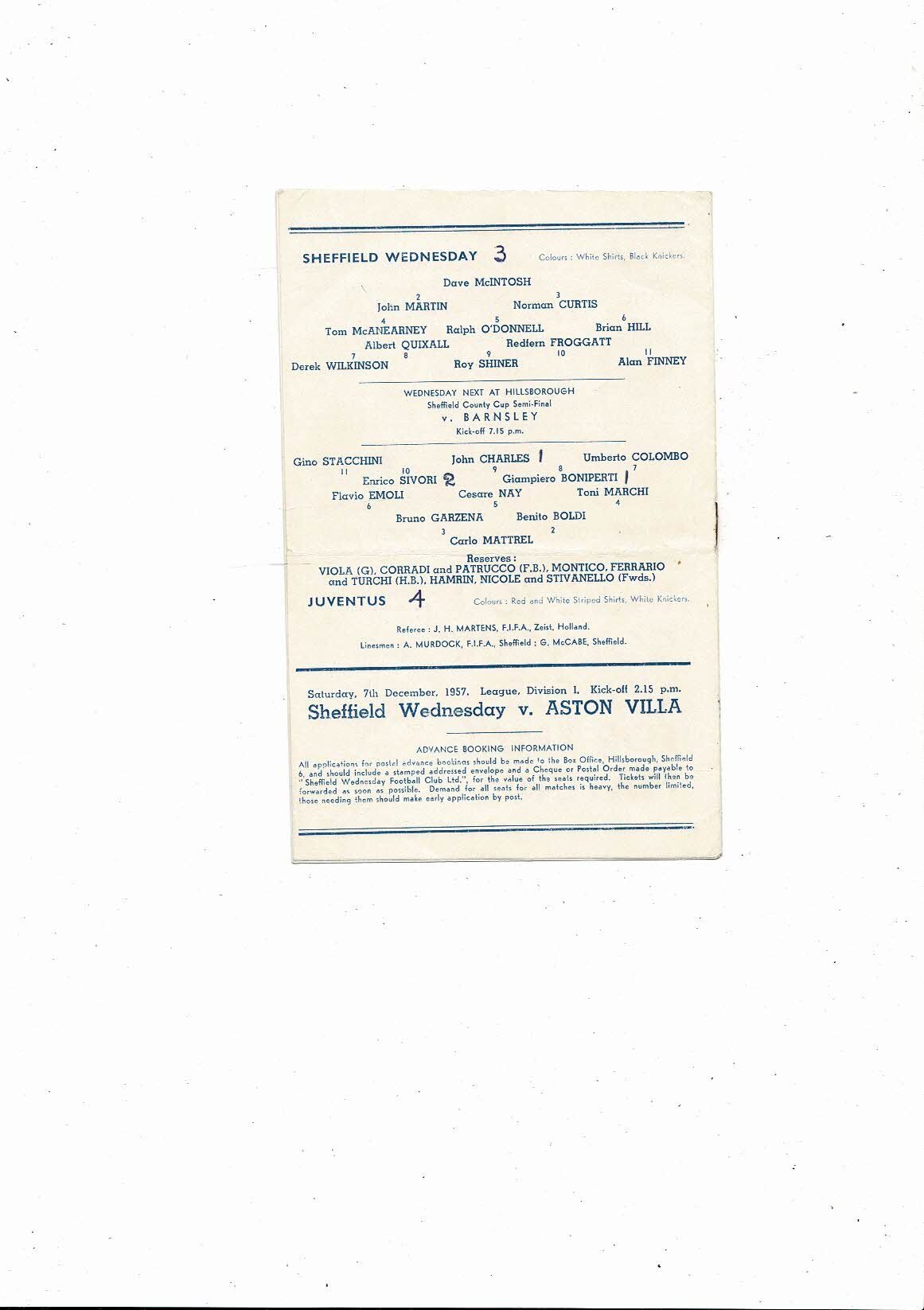 Sheffield Wednesday v Juventus Friendly Football Programme 1957/58