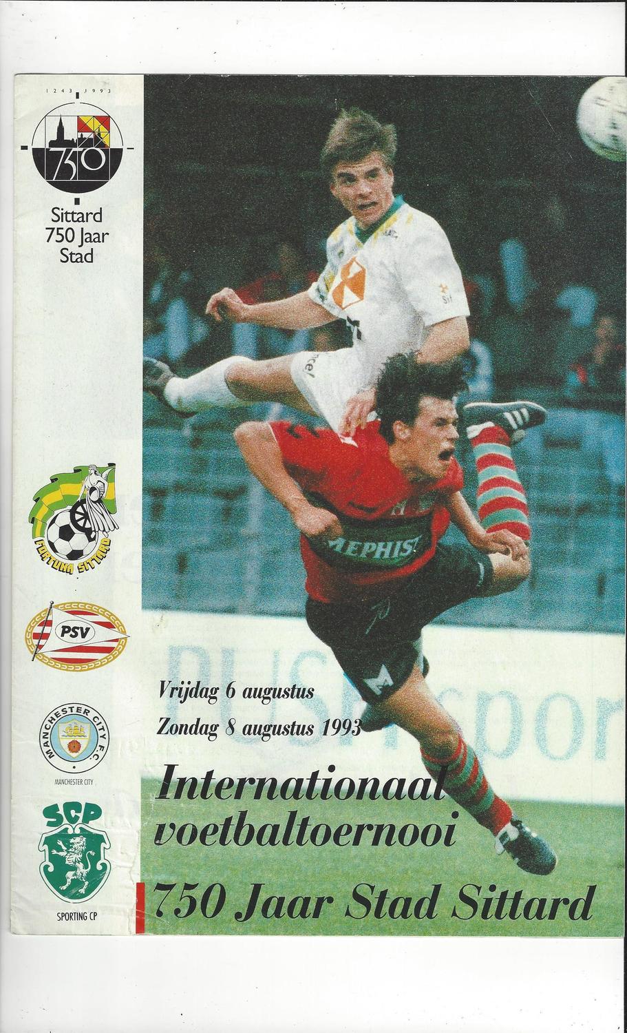 Sittard International Football Tournament Programme 1993 Manchester City, PSV,