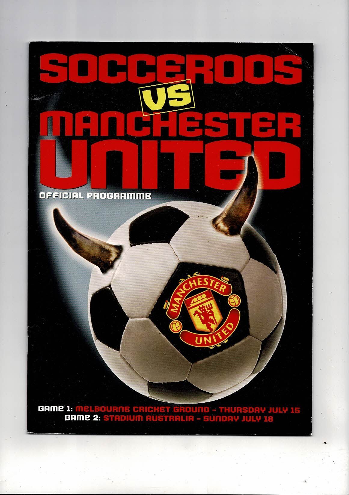 Socceroos v Manchester Utd Friendly Football Programme. Tour of Australia 1999