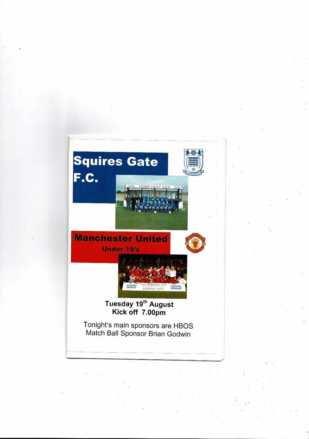 Squires Gate v Manchester United U19 Friendly Football Programme 2003/04