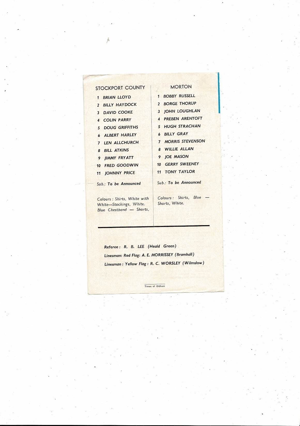 Stockport County v Morton Friendly Football Programme 1967/68