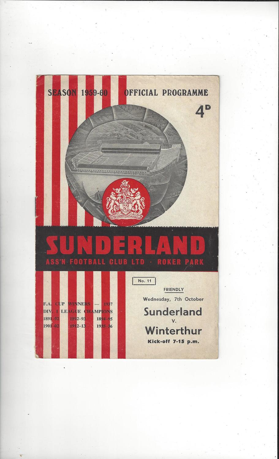 Sunderland v Winterthur Friendly Football Programme 1959/60