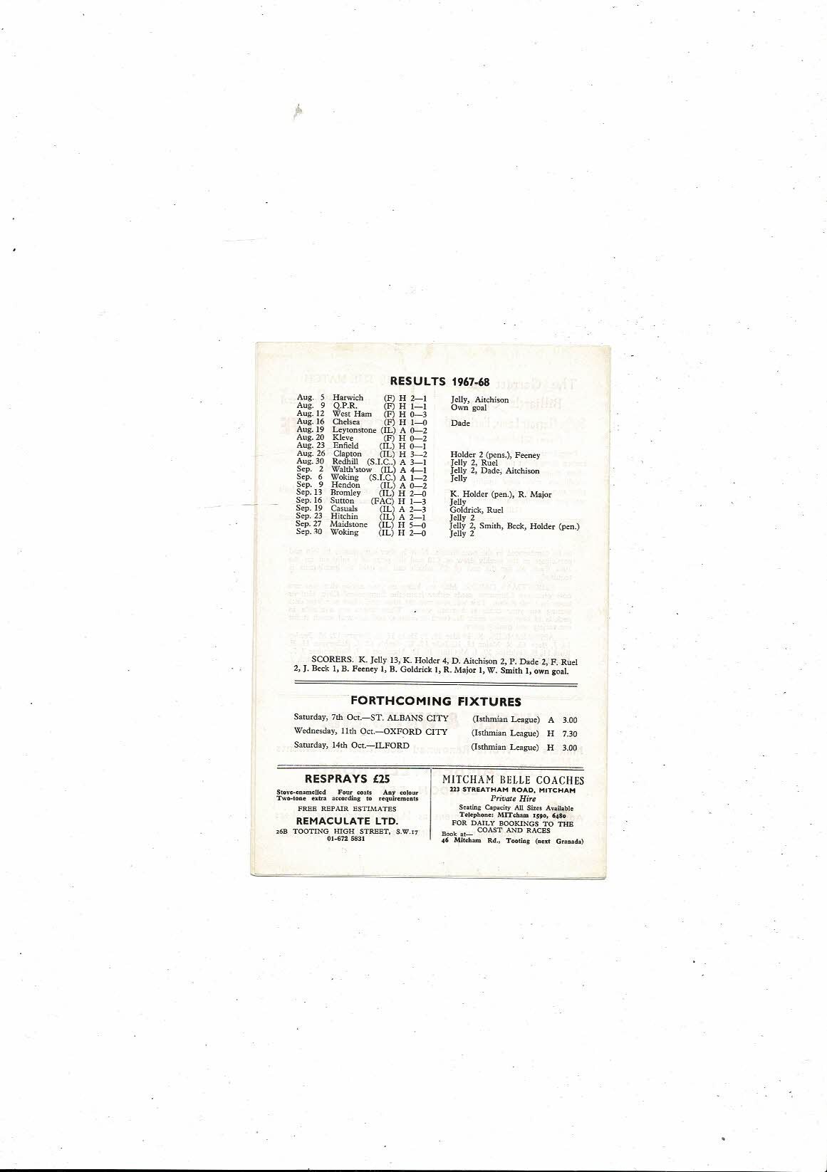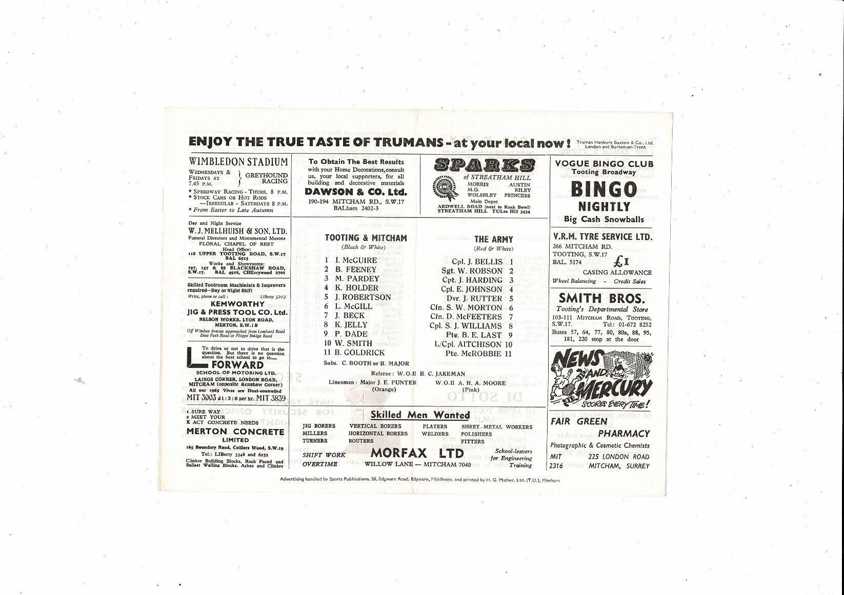 Tooting & Mitcham v The Army Friendly Football Programme 1966/67