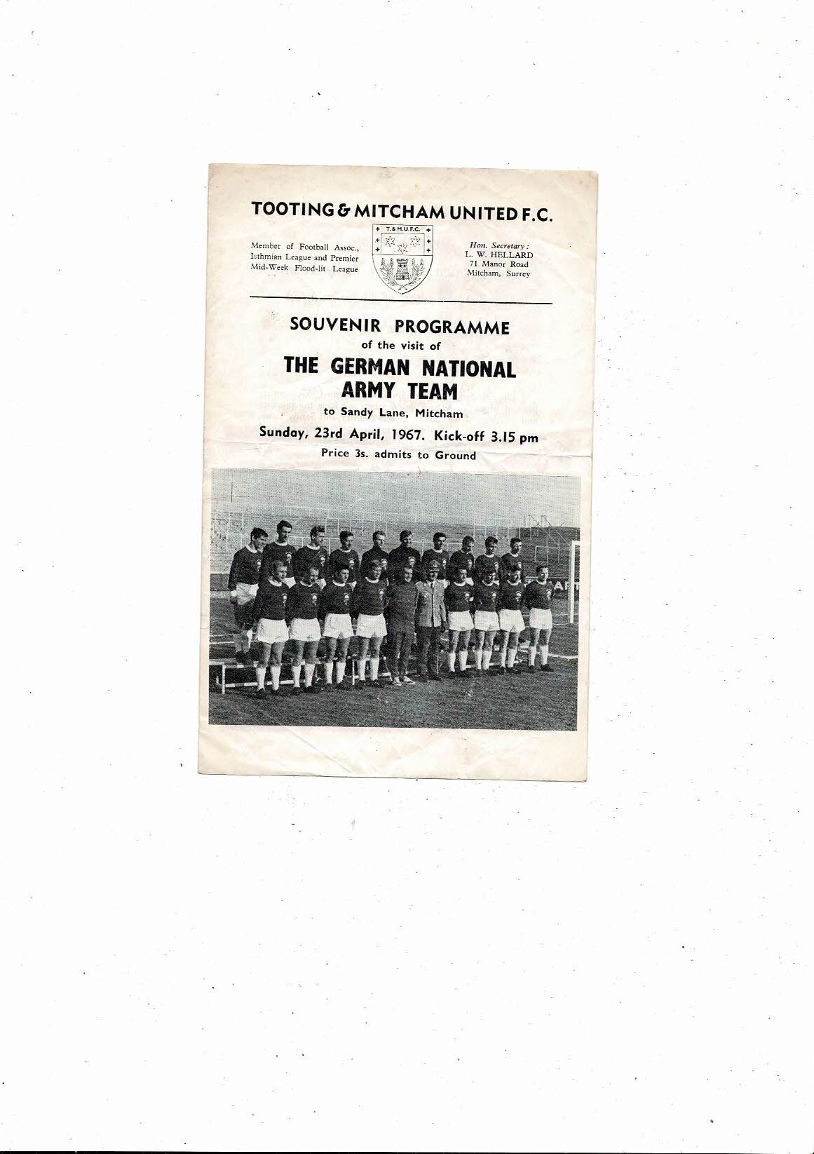 Tooting & Mitcham v The German National Army Friendly Football Programme 1966/67
