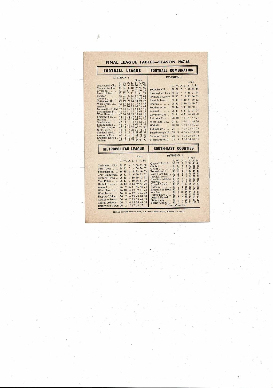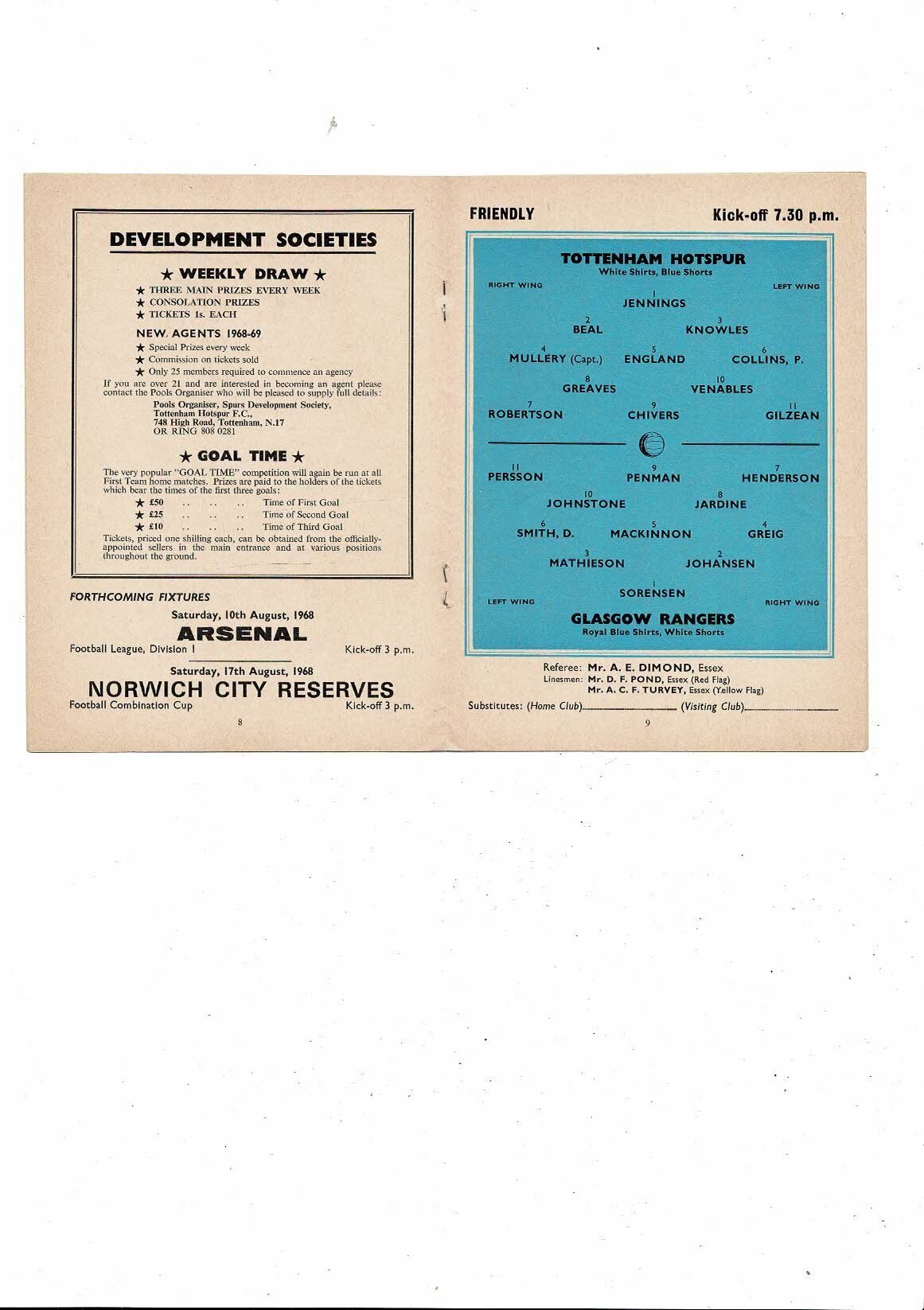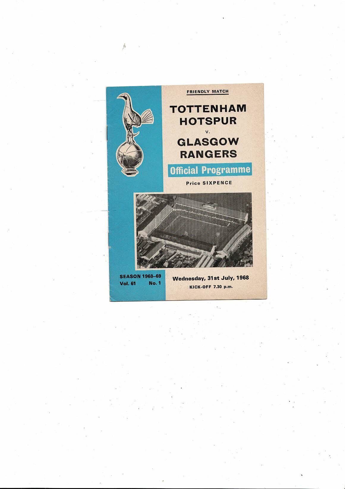 Tottenham Hotspur v Rangers Friendly Football Programme 1968/69
