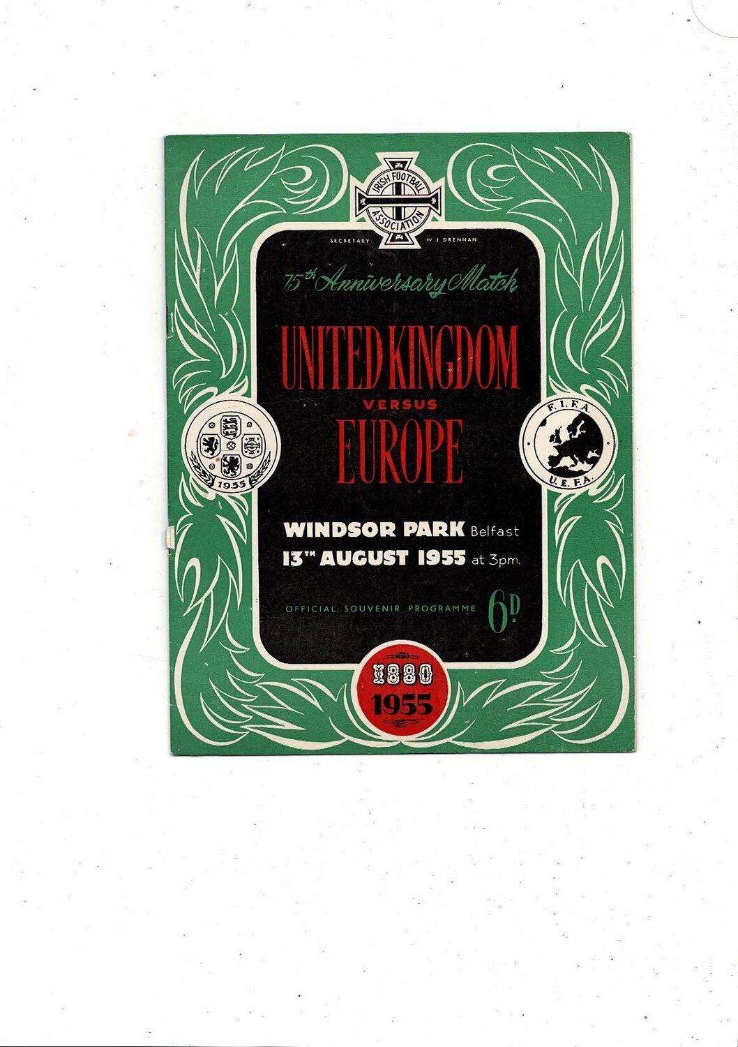 United Kingdom v Europe 75th Anniversary @ Windsor Park Football Programme 1955