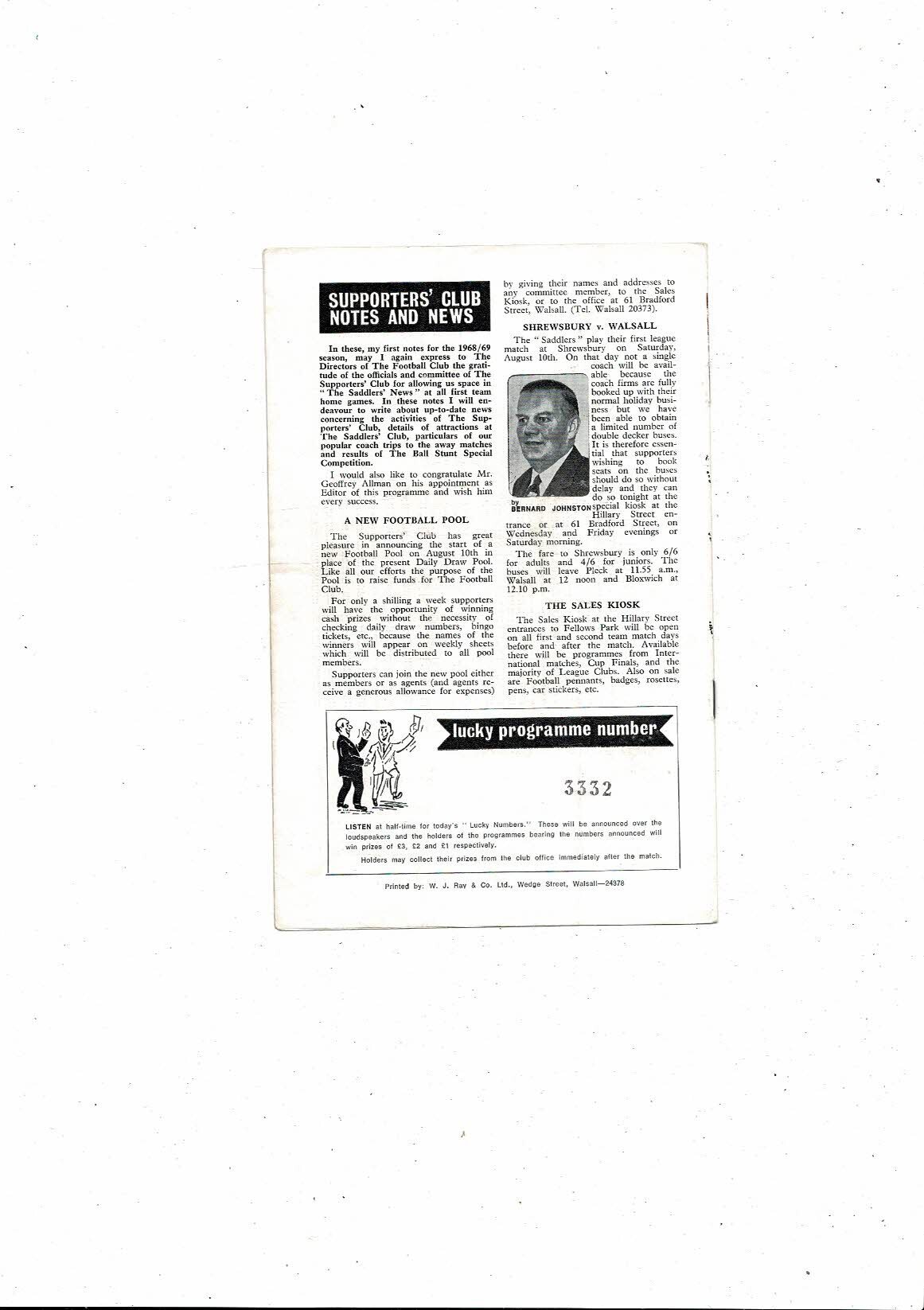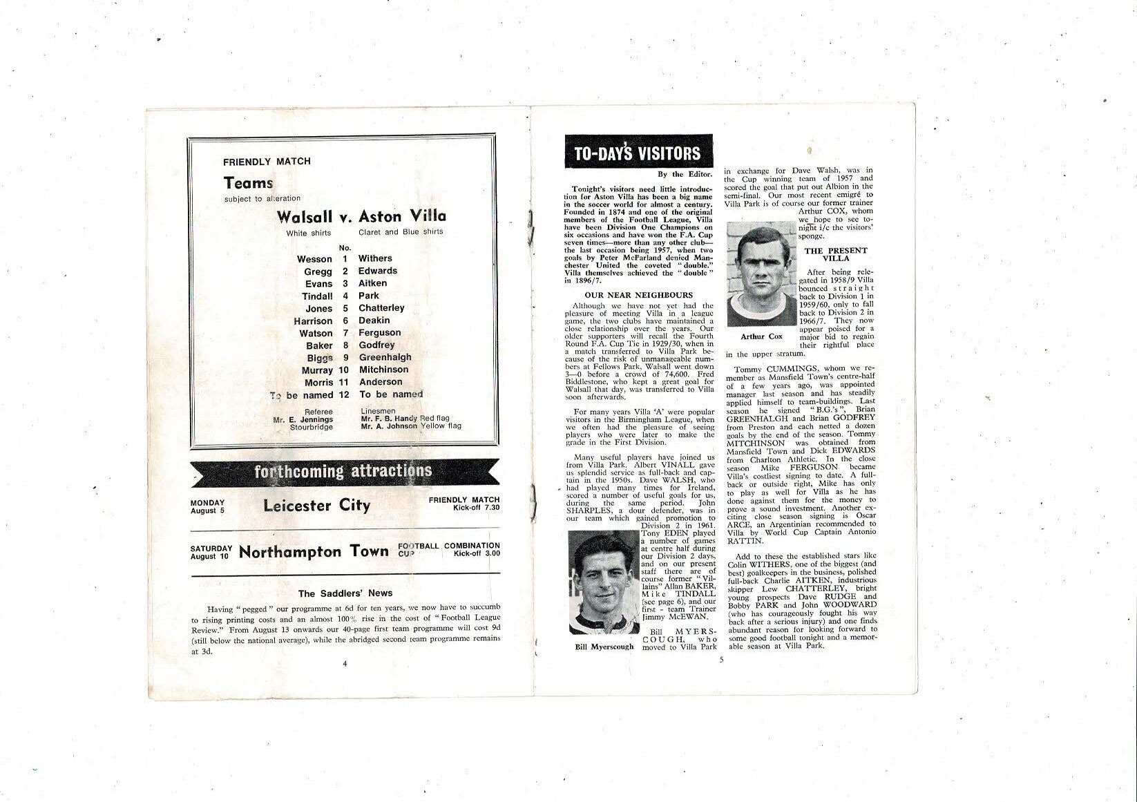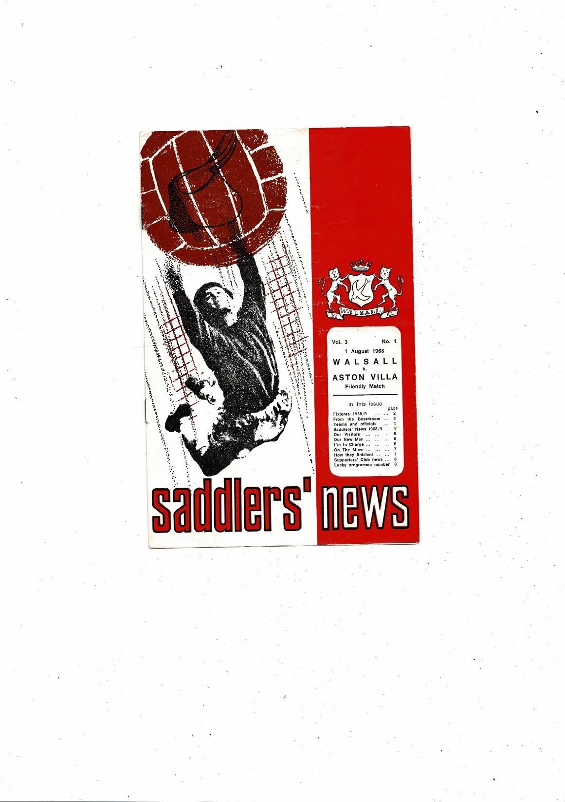 Walsall v Aston Villa Friendly Football Programme 1968/69 August
