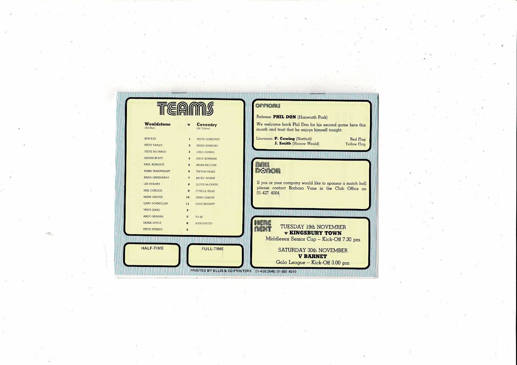 Wealdstone v Coventry City Friendly Football Programme 1985/86