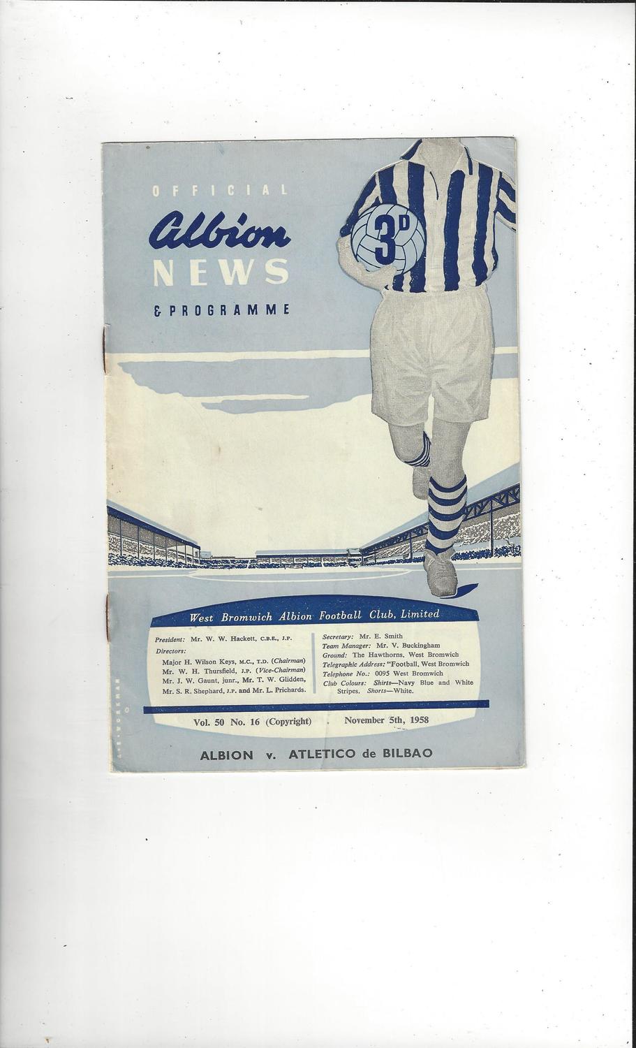 West Bromwich Albion v Atletico Bilbao Friendly Football Programme 1958/59