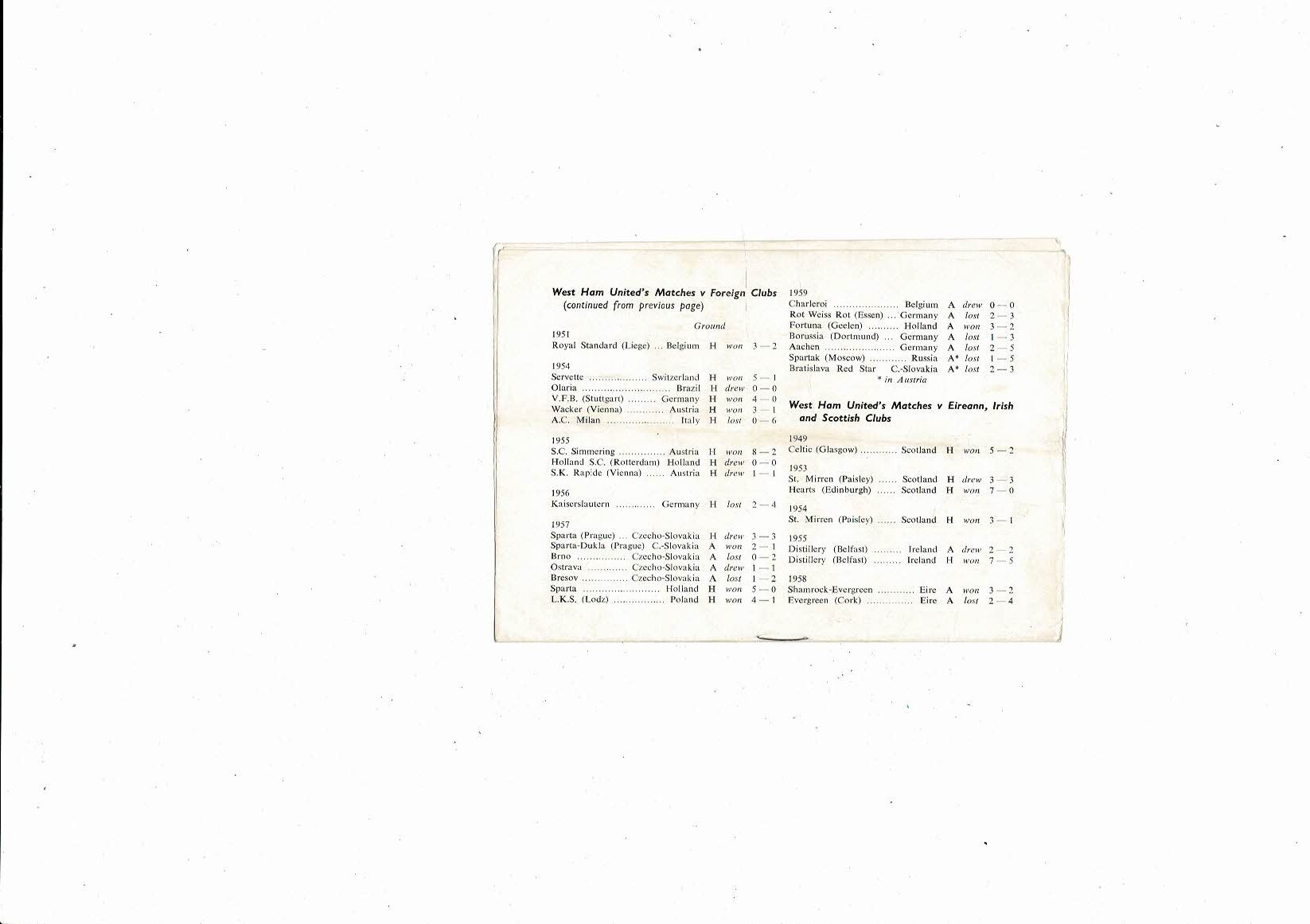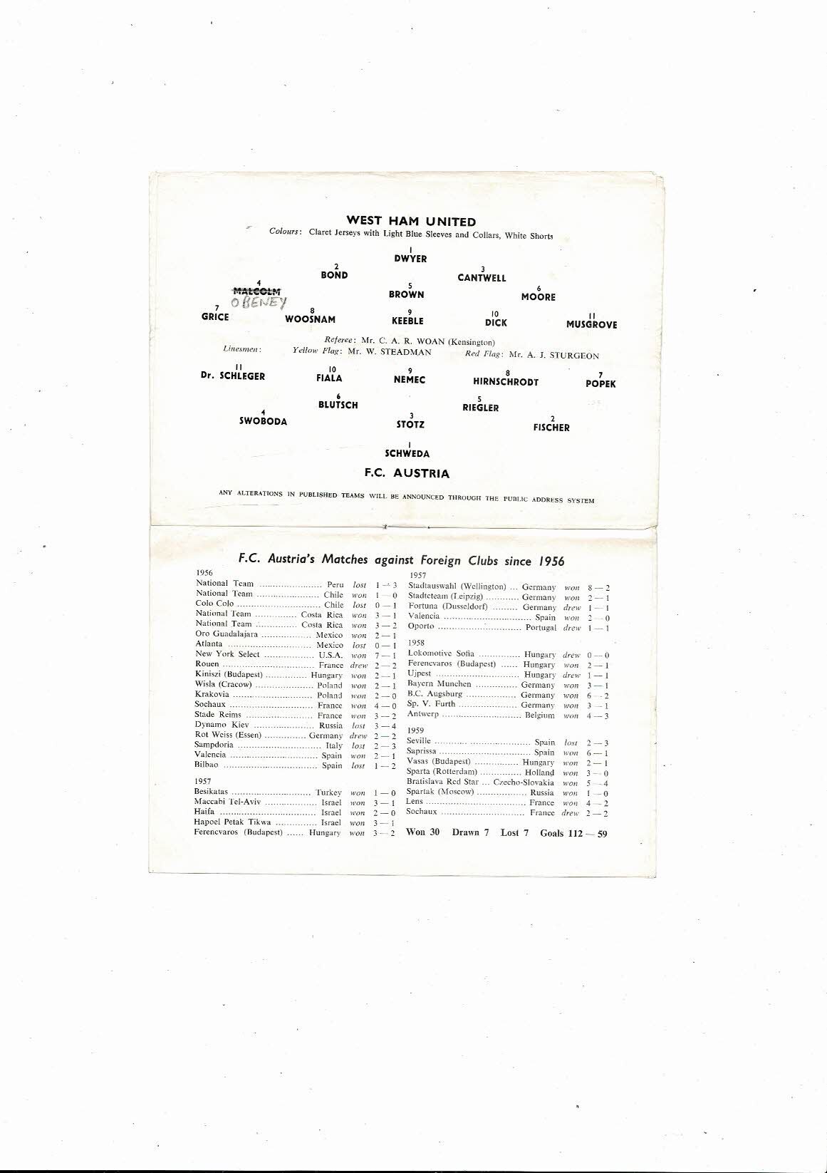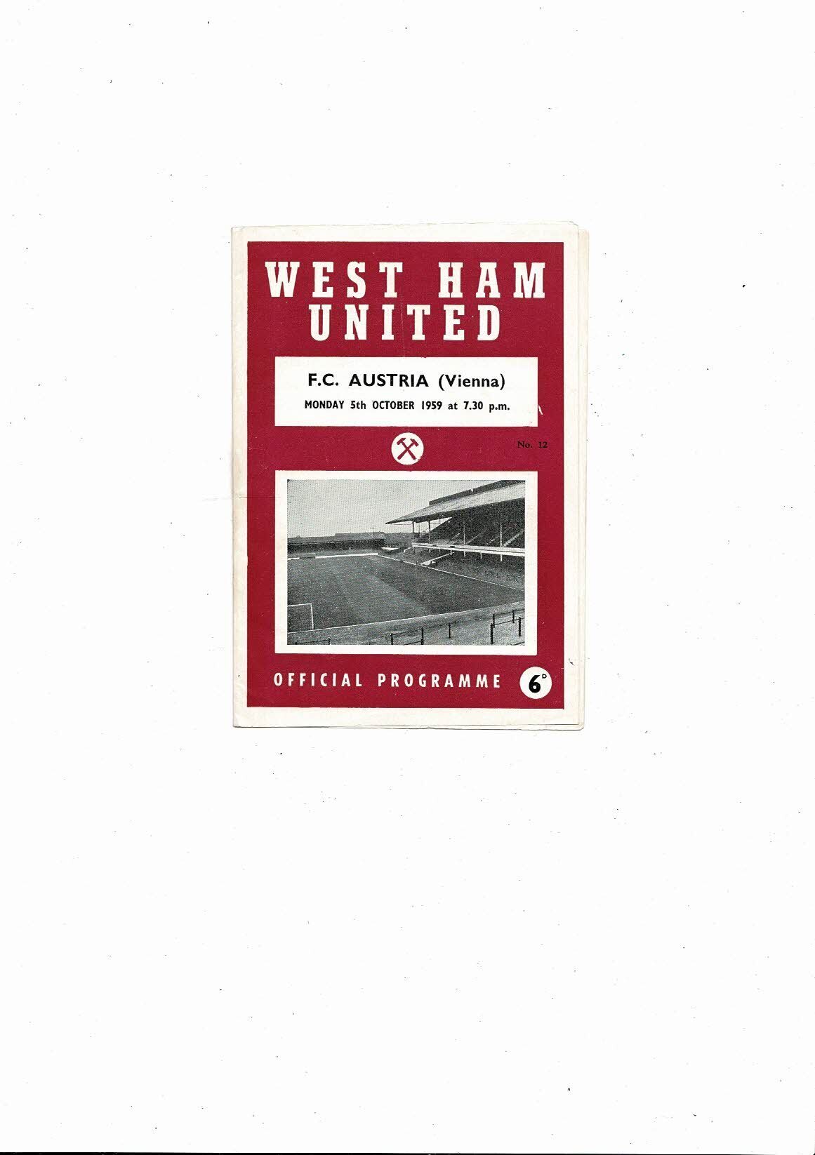 West Ham United v Austria Vienna Friendly Football Programme 1959/60