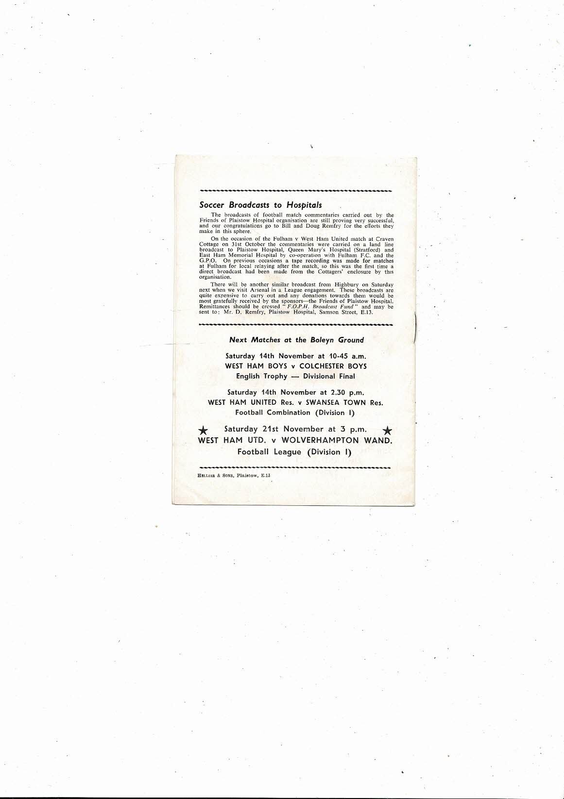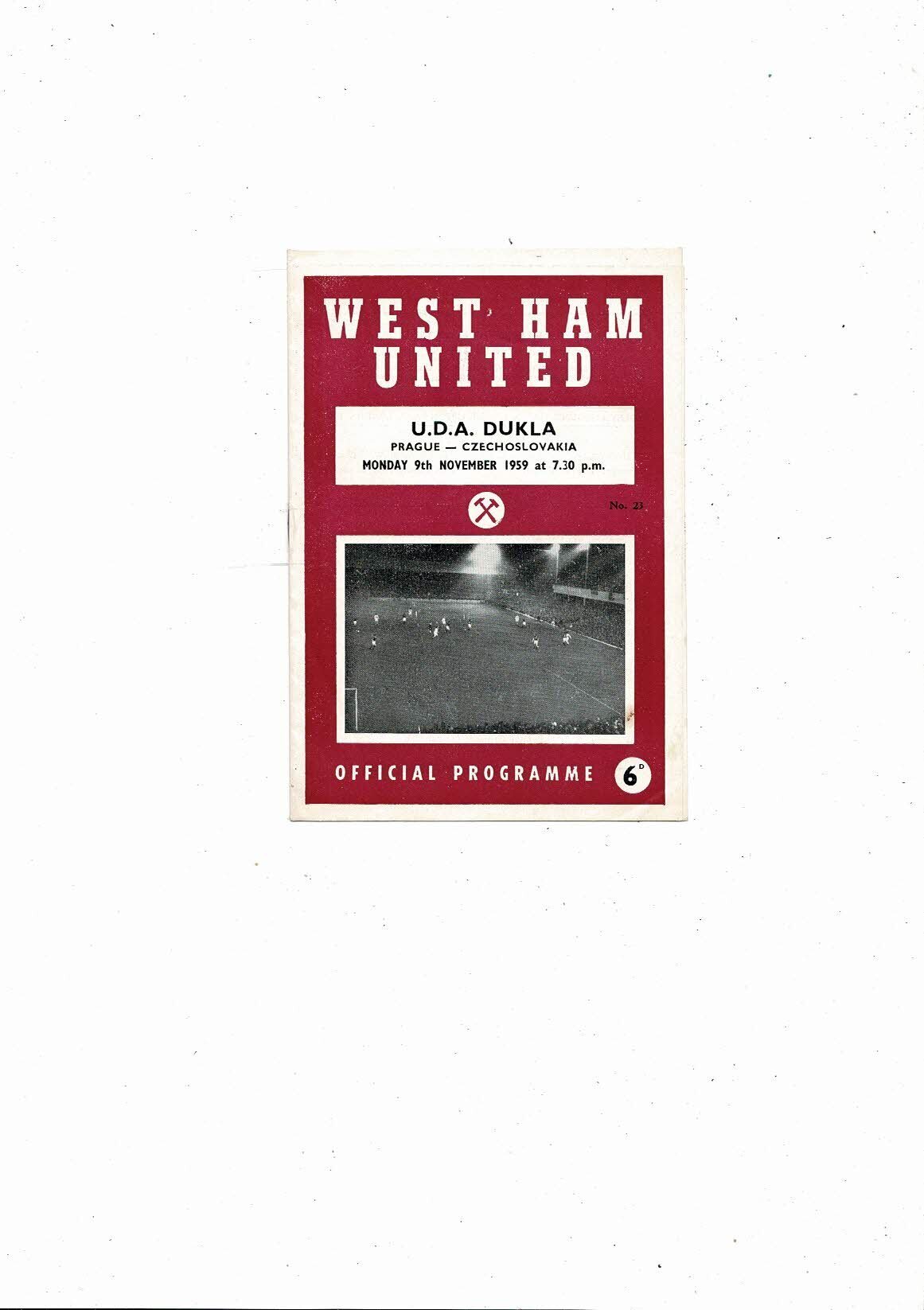 West Ham United v U.D.A. Dukla Friendly Football Programme 1959/60