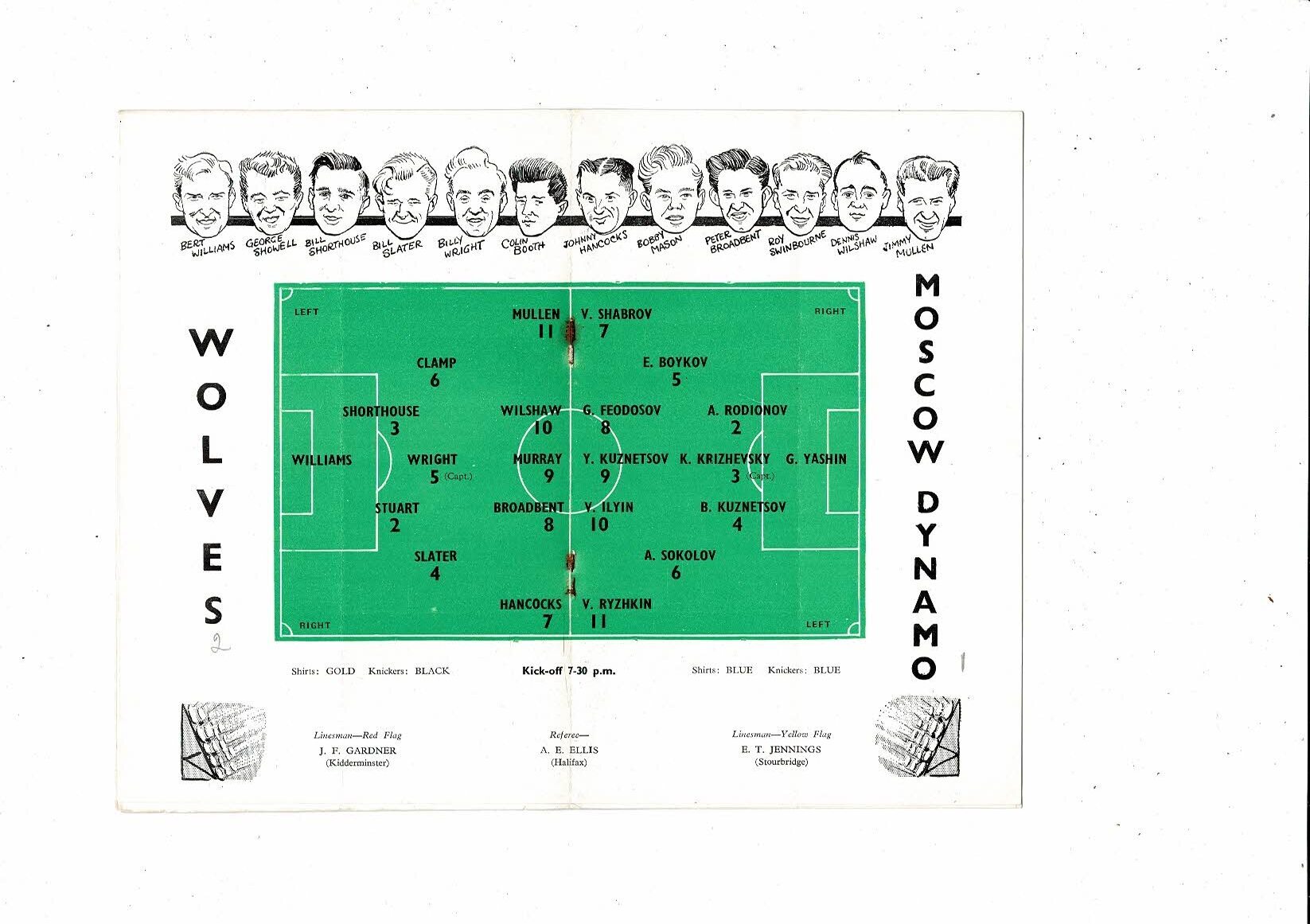 Wolves v Moscow Dynamo Friendly Football Programme 1955/56