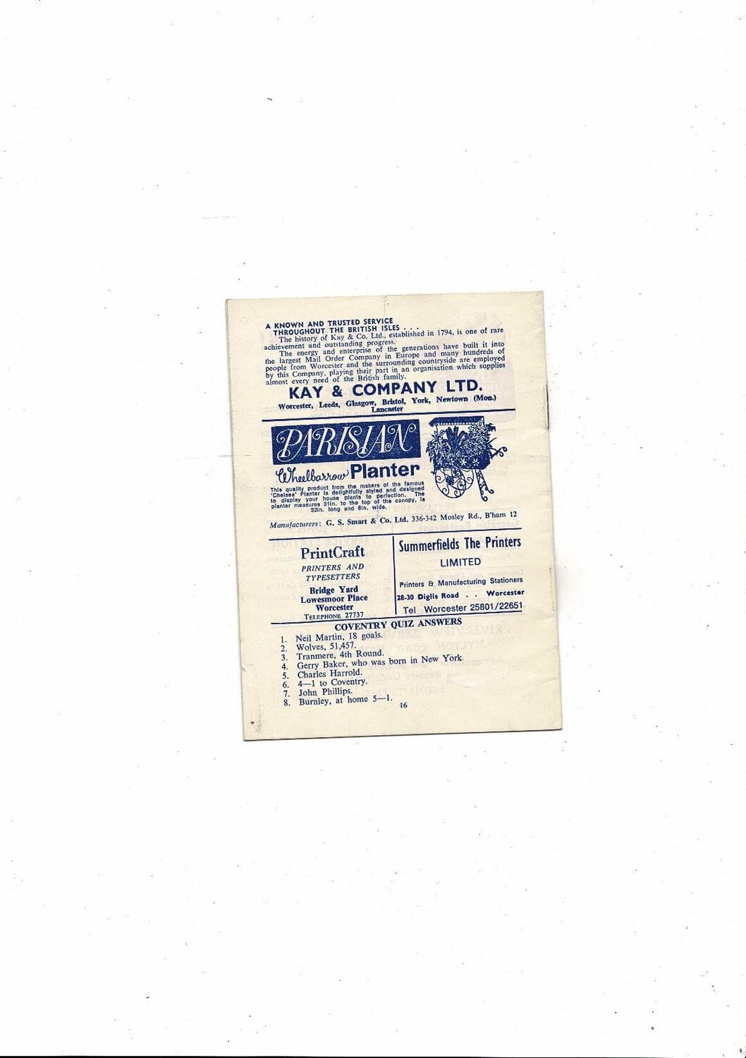 Worcester City v Coventry City Friendly Football Programme 1968/69